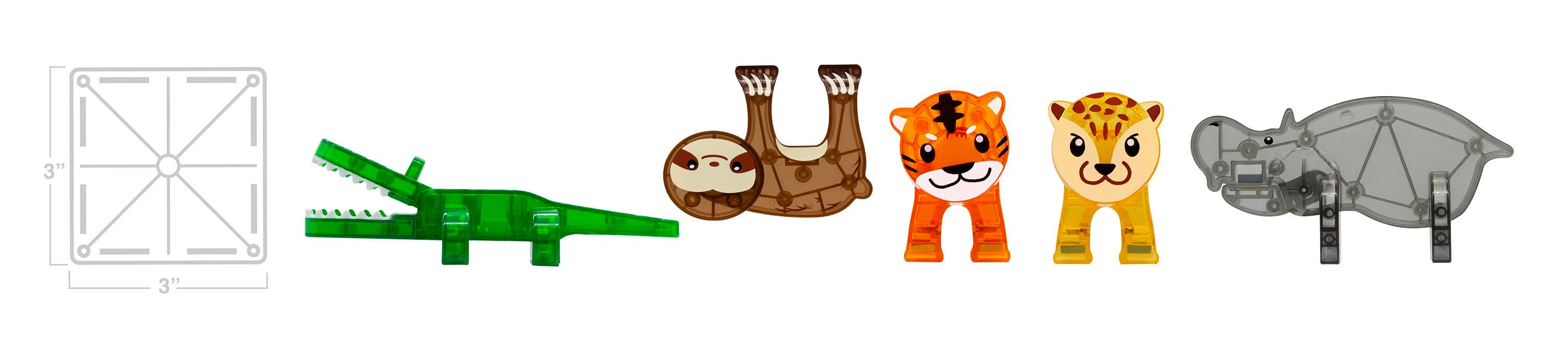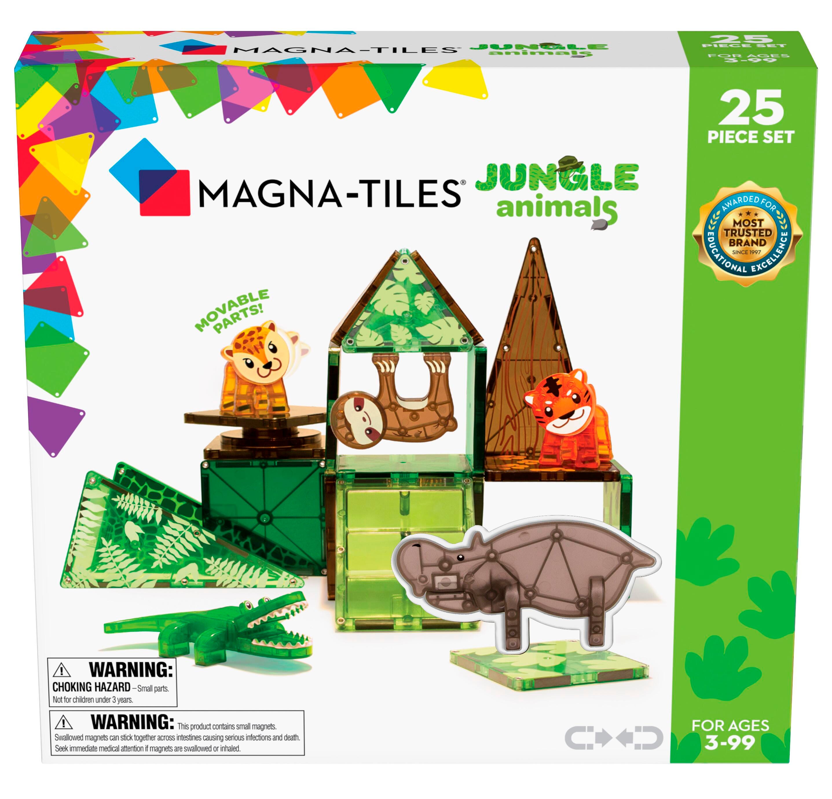 Grab your little explorers and have a roaring time! This playset of 25 jungle animal magna tiles is perfect for preschoolers, kindergarteners, or any young learners that love animals.