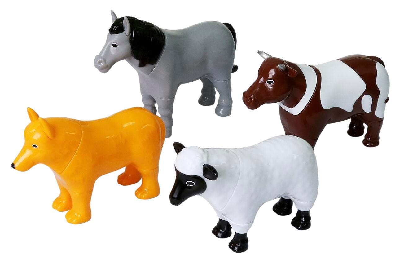 Animal Figurine Sets (With 4 Interchangeable Pieces Each) Include One of Each Animal: