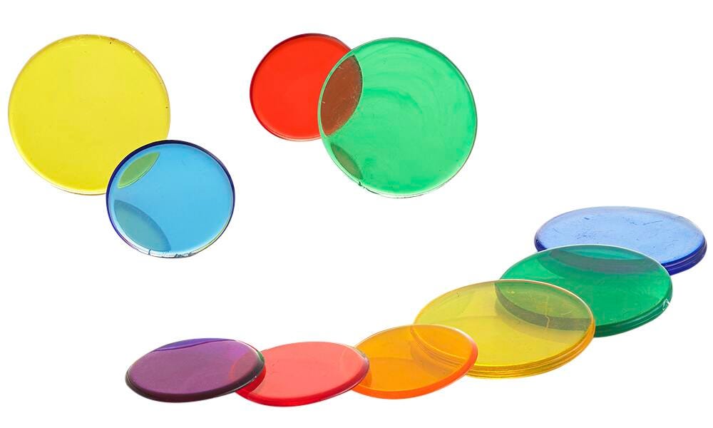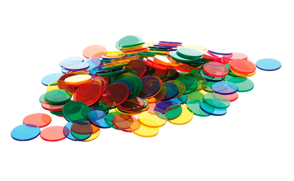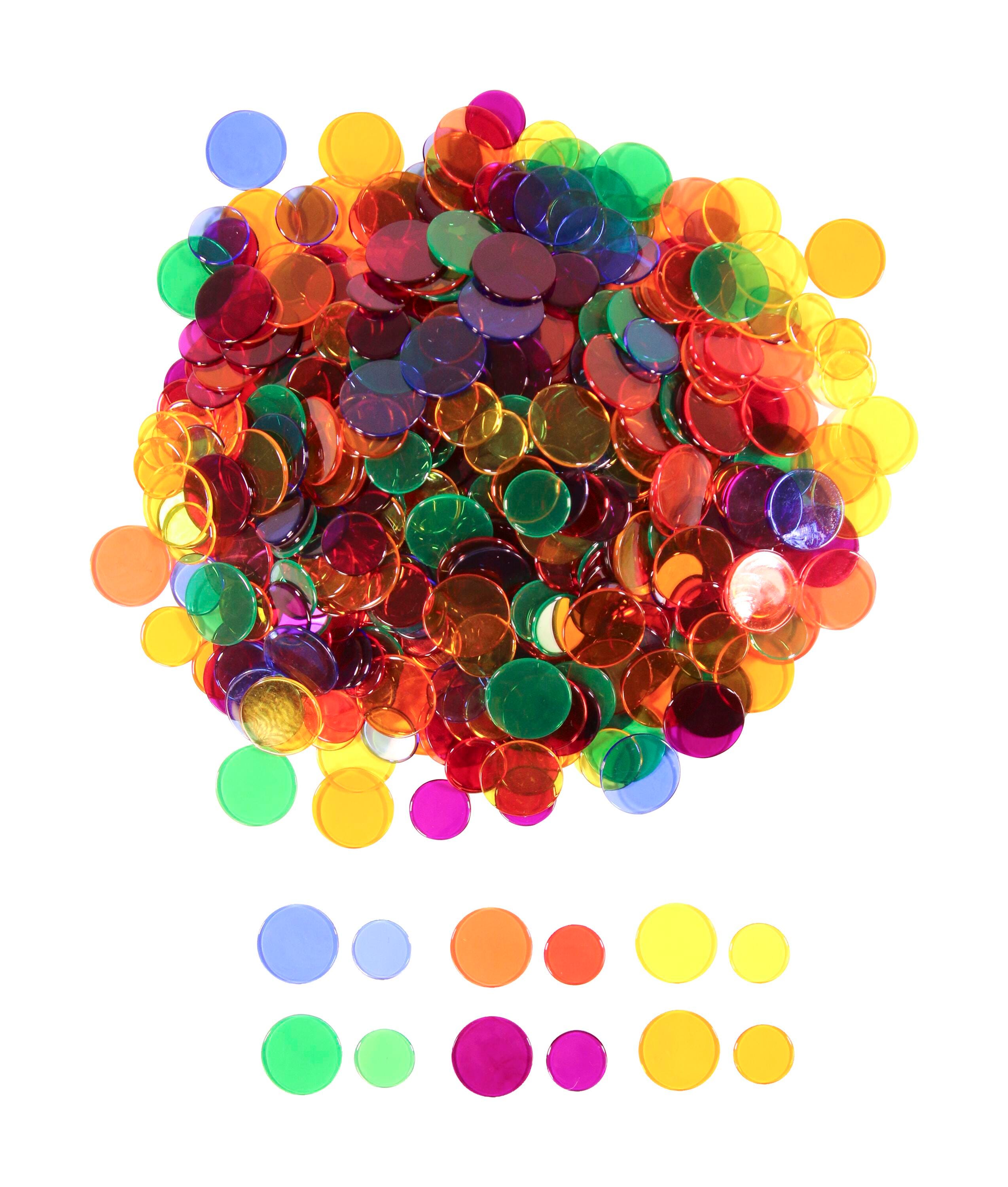 Add a splash of color to any math activity or game! Use these counters to demonstrate addition, subtraction, and multiplication. These Transparent Counters are perfect for demonstrating concepts via light panels or overhead projectors. Designed for ages 3 plus and comes in an assortment of six colors: Red, Blue, Yellow, Green, Orange, and Purple, Two sizes: 200 pieces of 1-inch diameter, and 300 pieces of 3/4-inch diameter.
