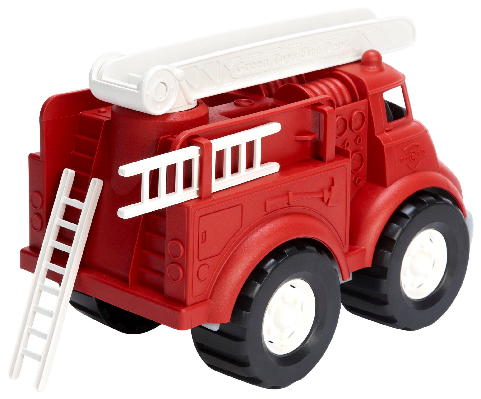 Description Put out 3-alarm blazes. Rescue kittens from treetops. Protect the environment from harm. This is just a typical day in the life of the Green Toys Fire Truck, the world’s greenest emergency vehicle. Solidly constructed from 100% recycled plastic milk containers that save energy and reduce greenhouse gas emissions, the Green Toys Fire Truck has no metal axles, so it's safe for both the earth and the Good Green Fun seekers who call it home. Sturdy roof ladder pivots vertically and rotates 360 degrees. Two removable side ladders. No BPA, PVC, or phthalates. Packaged using only recycled and recyclable materials. Measures 10-3/4 L x 6-1/2 W x 7-1/2 H inches. Appropriate for ages 12 months and up.Features Green Toys fire truck has a pivoting, rotating roof ladder, and two removable side ladders No metal axles Made from 100% recycled plastic Easy to clean - dishwasher safe