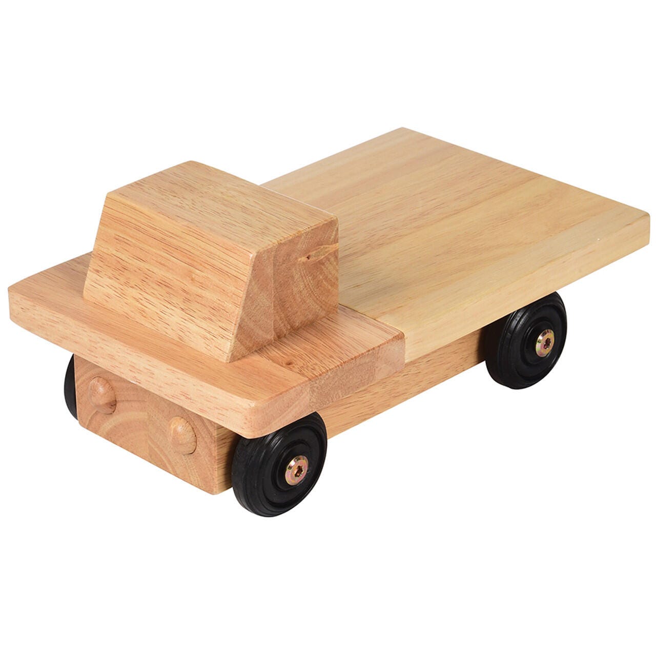 Attractive all-natural wooden flatbed truck offers a full order of fun for your early childhood space. This wooden play vehicle is equipped with 4 functioning rolling black wheels and is constructed in clean, geometric lines that actually resemble a flatbed work truck, perfect for a more engaging roleplay experience that inspires early identification skills. Regular play with trucks can help develop motor skills, cooperation with others through group play, and a more creative play experience in the classroom, childcare center, or home. Use this truck for on-the-go fun, on "track rugs", or even as a collectible for children's bedrooms. Truck measures 9 L x 5 W inches.Features