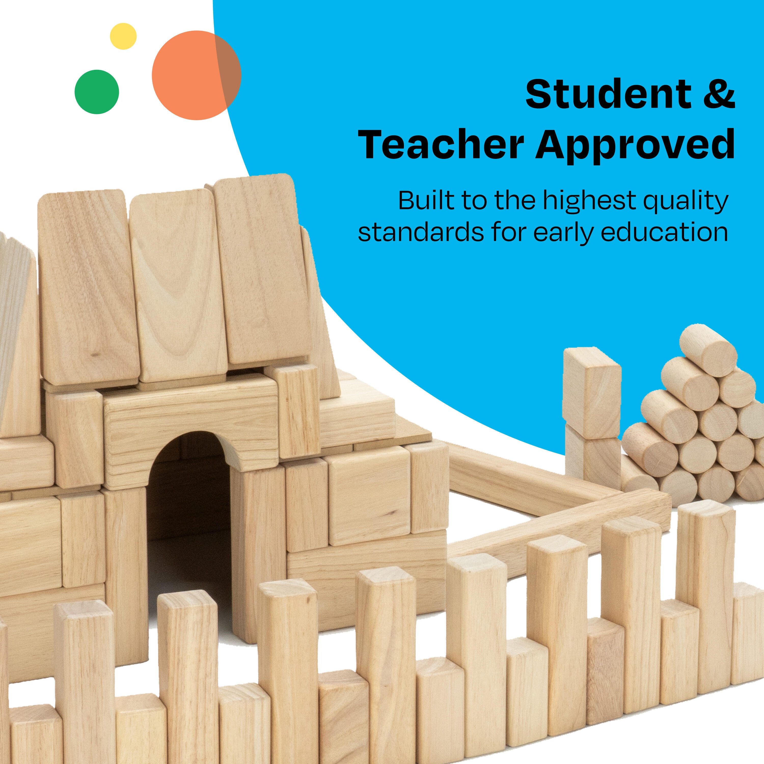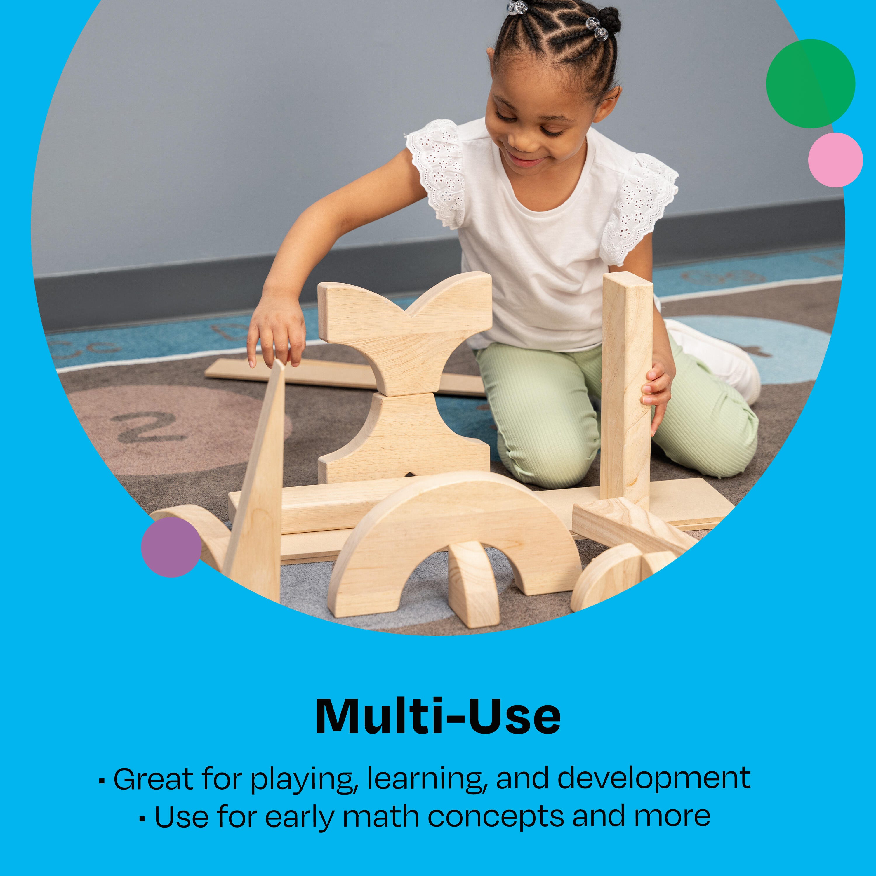 • Use children's wooden blocks for hands-on learning while promoting creativity, gross motor skills, hand-eye coordination, and early math concepts
