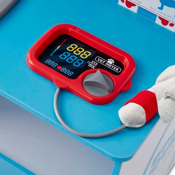 The sturdy wooden play center features an “X-ray” lens with two removable X-rays, a pet scale, a blood pressure monitor, a sink, a treat chute, a pump bottle dispenser, and lots of storage. There are hooks and holders for lots of accessories. Detailed assembly instructions are included (assembles with just a Phillips head screwdriver, not included). Kids three and older will love having their very own space to nurture and care for their plush pals! Adult assembly is required. Contains small parts before assembly.