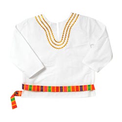 A more multicultural play experience starts with quality role-play essentials. This role-play version of a Latino tunic is made to replicate a traditional outfit for boys in the Latin community. Designed with easy snaps and perfect for ages 3 to 6.