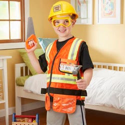 Your favorite building enthusiast will be inspired to work (and play) hard in this realistic construction worker clothing by Melissa & Doug.
