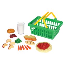 What’s for dinner?! A juicy steak with a basket potato and side of asparagus? Or how about a fresh salad topped with grilled chicken breast? You'll please every child's play taste palate with this basket filled with nutritious dinner meal options! All durable plastic pieces represent recommended serving sizes and are easy to wipe clean. Set also includes an Activity Card for play ideas and a basket to hold it all. Basket measures 10-3/4 L x 5-1/4 W x 8-1/2 H inches. Safe for ages 3 and up.Features