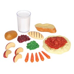 - Realistic play food pieces offer a fun visual aid for adults to introduce children to food groups, nutrition, food prep, and balanced meals