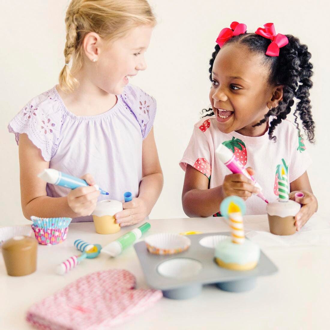 Melissa & Doug Wooden Bake and Decorate Cupcake Set, 23 Pieces