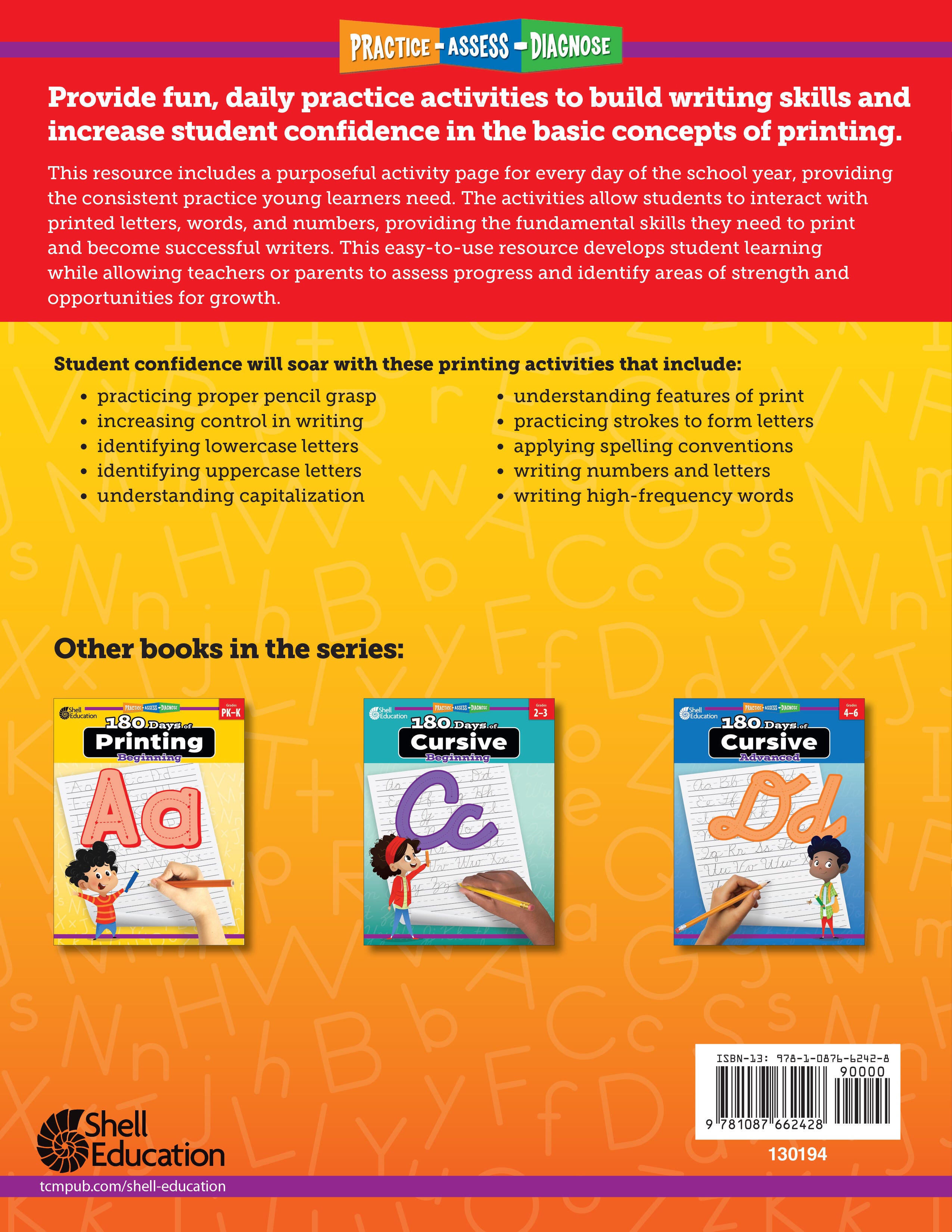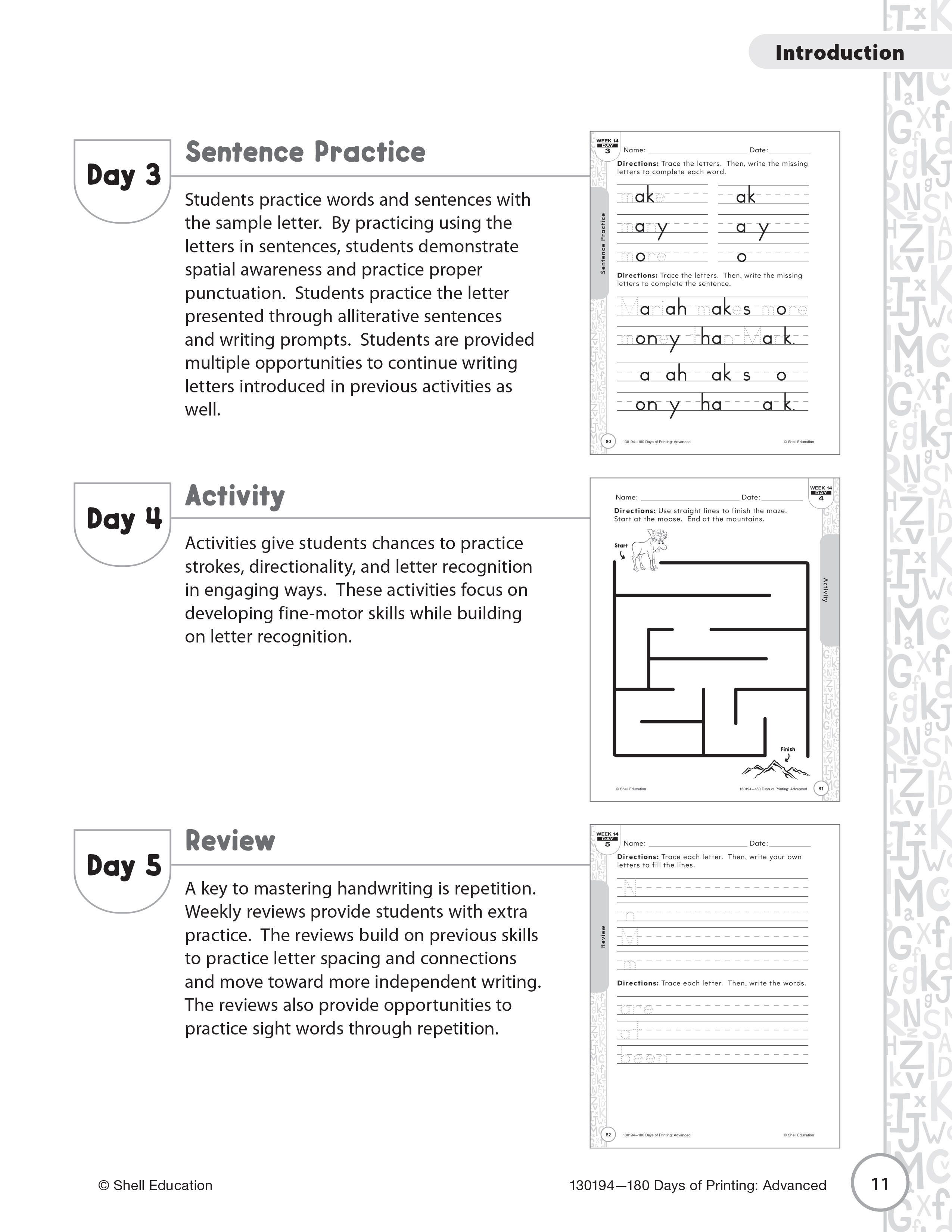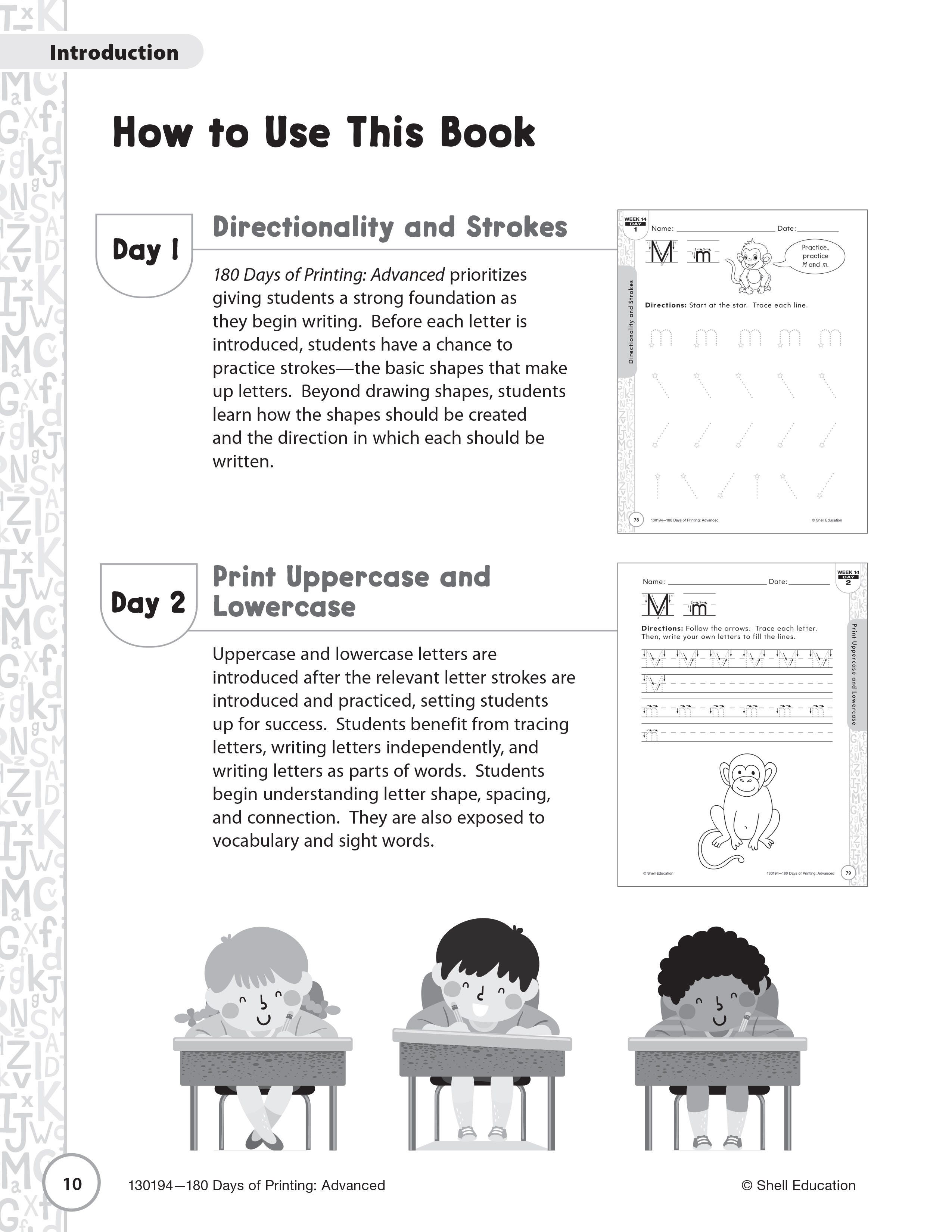 Shell Education 180 Days of Printing: Advanced, Grades 1 to 2