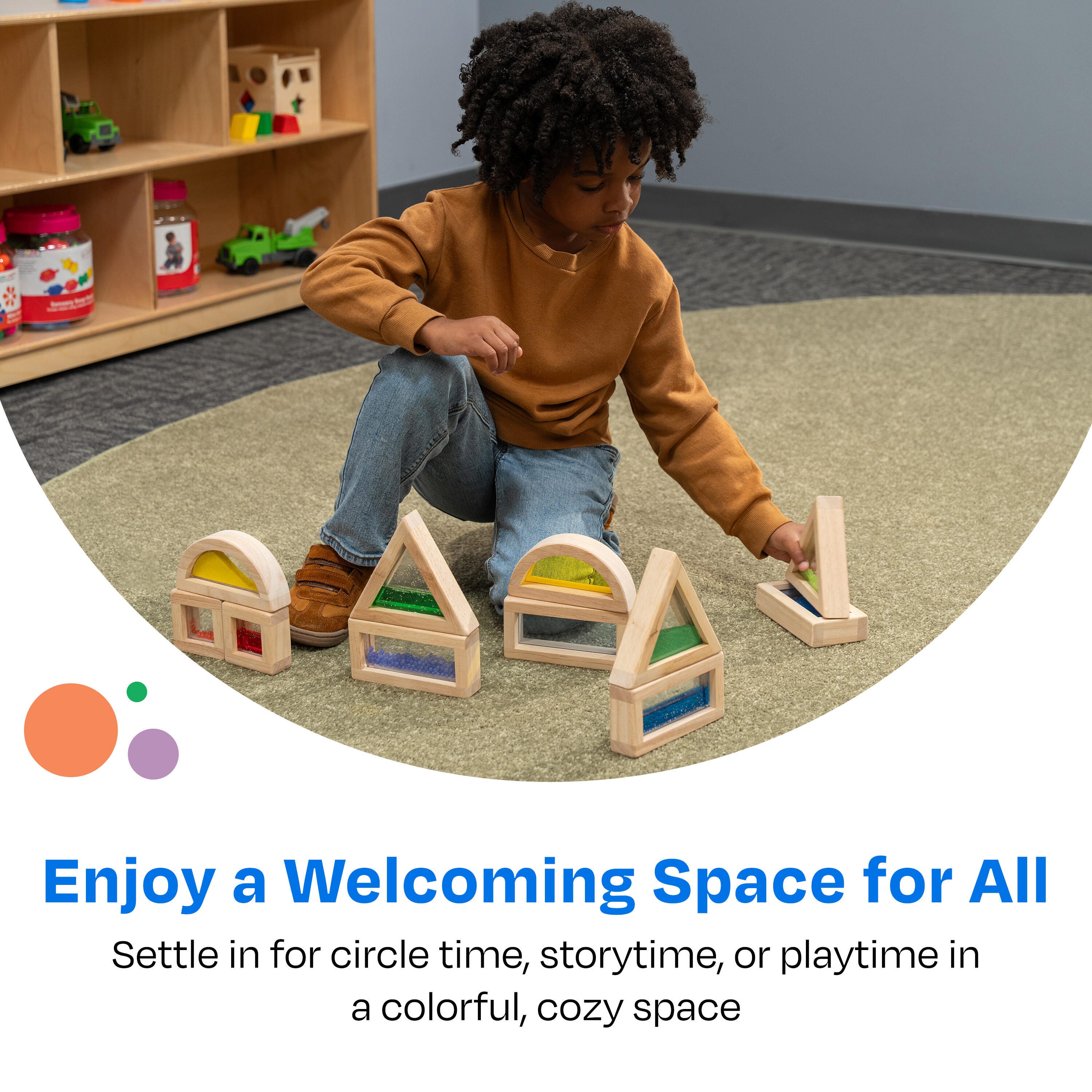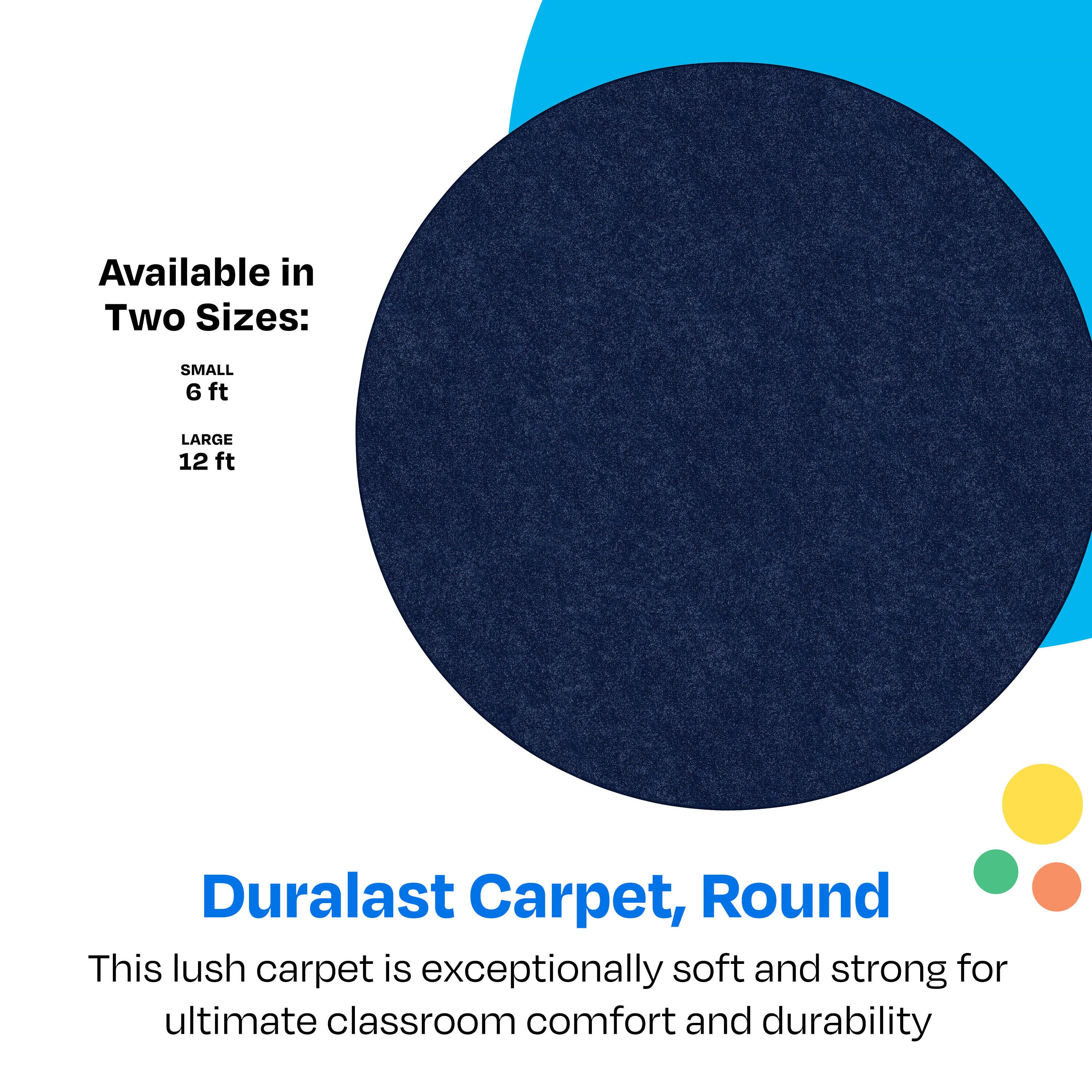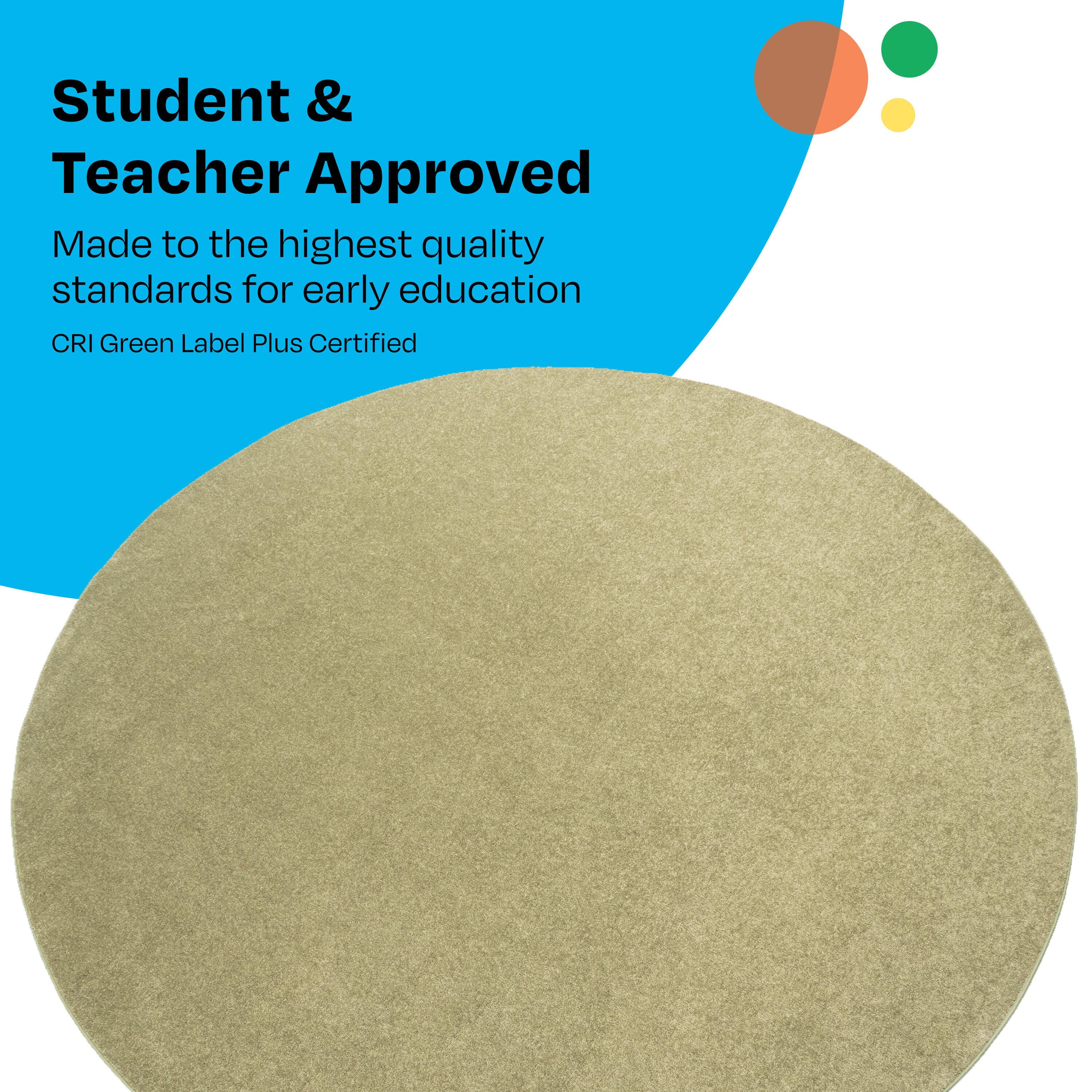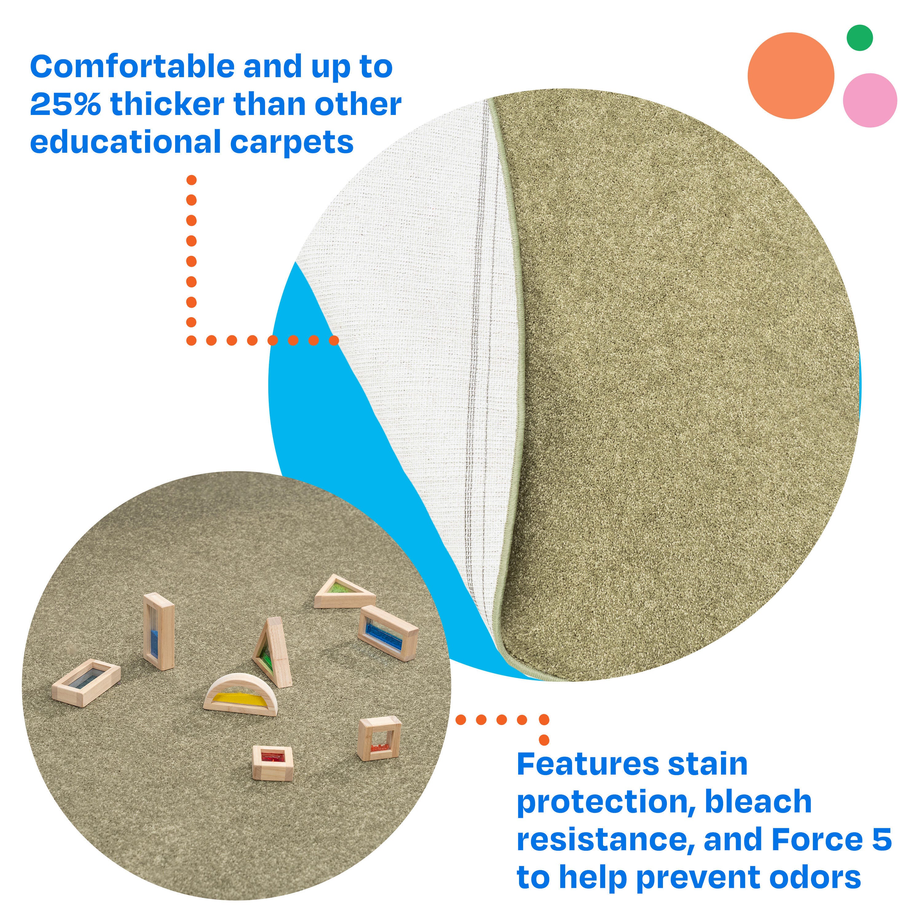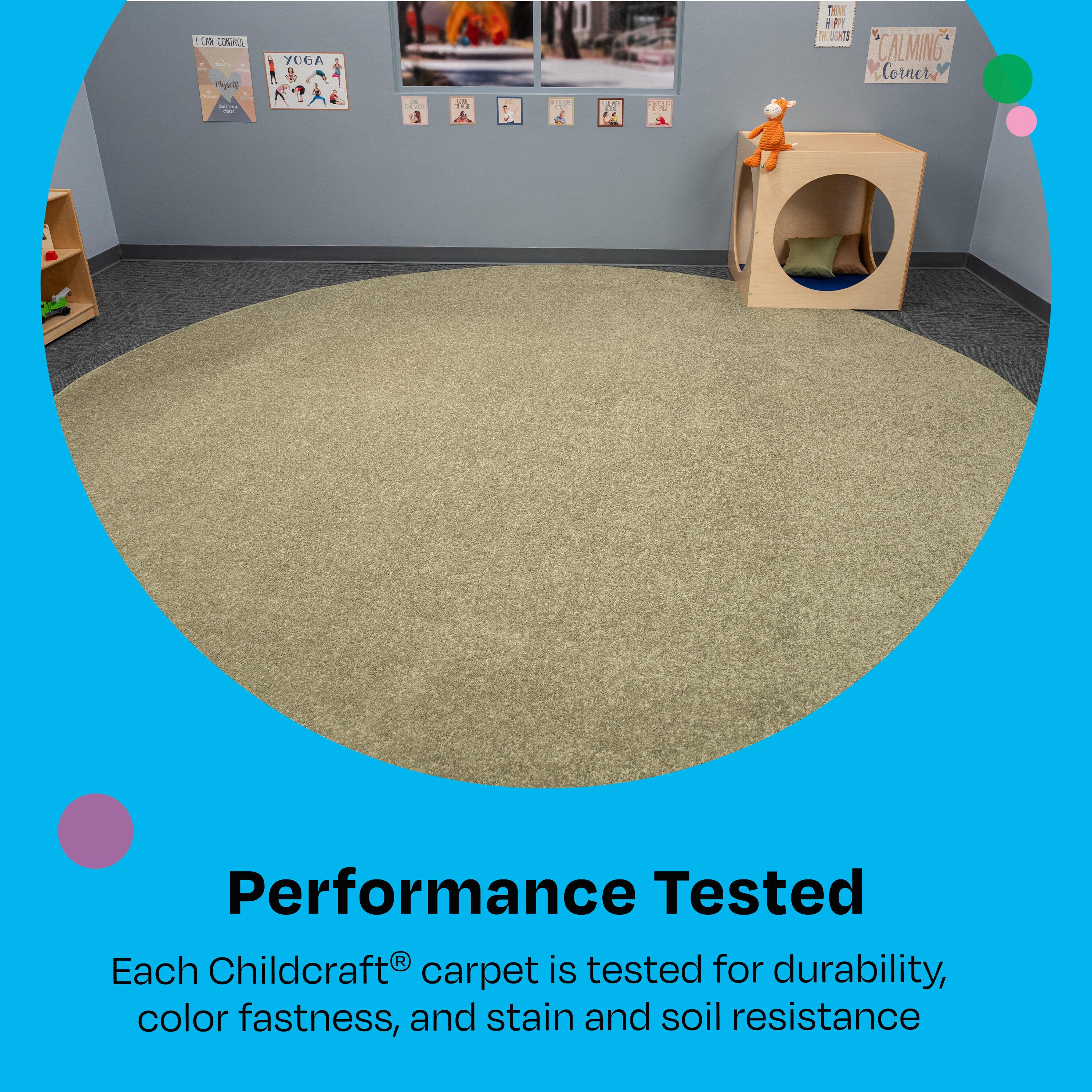 Built to last, Childcraft® Duralast Carpet for Classrooms offers the child-friendly protection you need with the lush quality and appearance your room deserves. This round carpet features a bold, colorful design and allows for abundant seating options on the floor. Our classroom carpet features exceptional softness with permanent stain and bleach resistance. Made of high-quality materials, the large carpet is great for everyday use for circle time, group activities, relaxation, and more. Each Childcraft® carpet is performance tested for durability, color fastness, and stain and soil resistance for quality you can trust. The Green Label Plus Certification also helps ensure the best indoor quality for a safe and healthy environment all year long. Please Note: Childcraft® carpets are custom designs that are made to order and are therefore non-returnable.