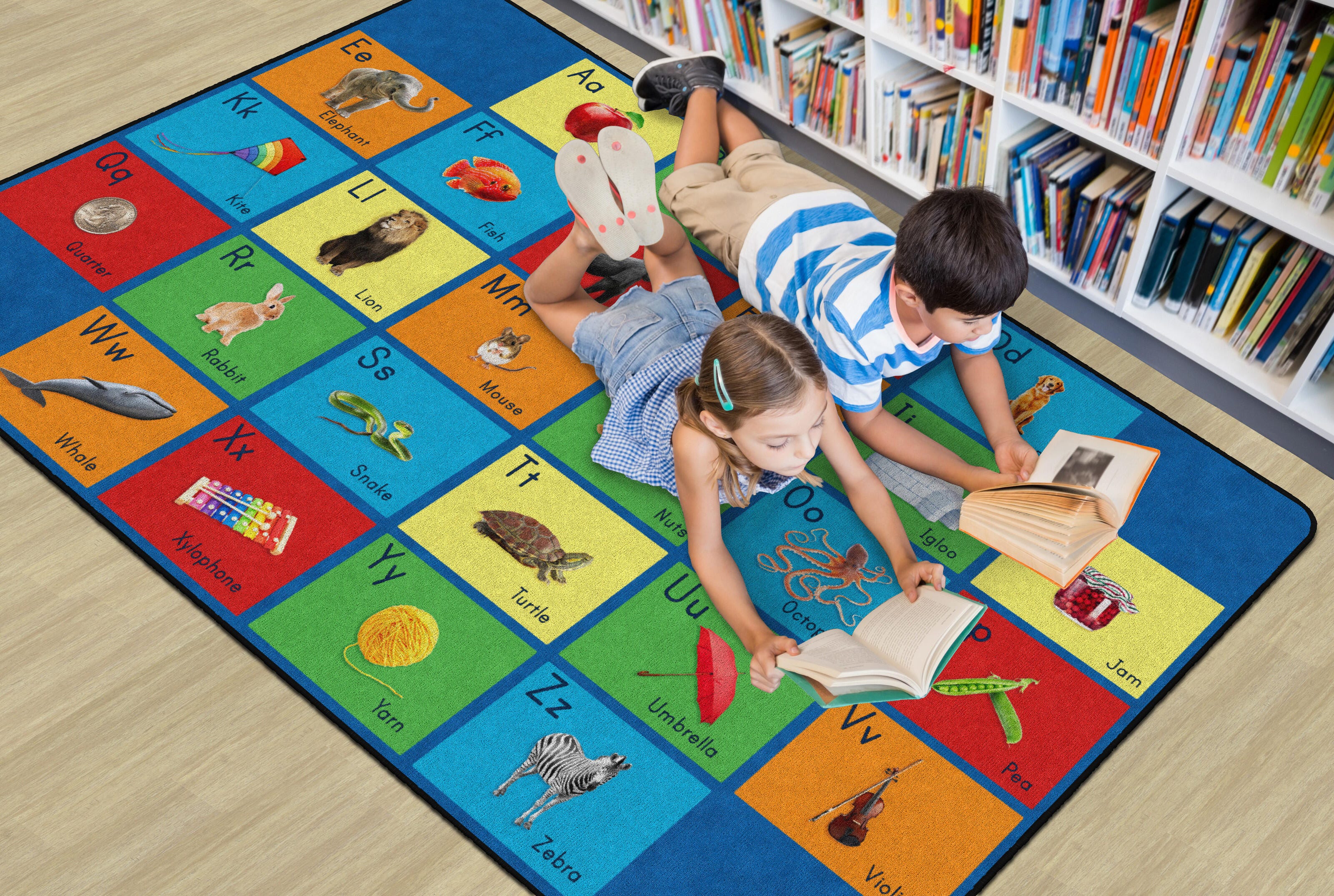 Description Bright images, from everyday items to zoo animals, teach letter recognition inches a fun way. Vivid photographic images on this See My Alphabet classroom carpet will keep students engaged in learning their ABCs, sparking their imaginations while growing their knowledge. These innovative PhotoFun carpets enhance visual learning for all children regardless of language, speech or hearing abilities. This rectangle carpet is available in several sizes to best match your space. Please select the size that fits your space best when ordering.Features Treated with SCOTCHGARD-PROTECTOR for superior soil resistance Treated with FORCE 5 to guard against odor, mildew and mold 100% nylon for an eco-friendly carpet that's easy to clean CRI Green Label Plus Certified to promote a safe, non-toxic environment