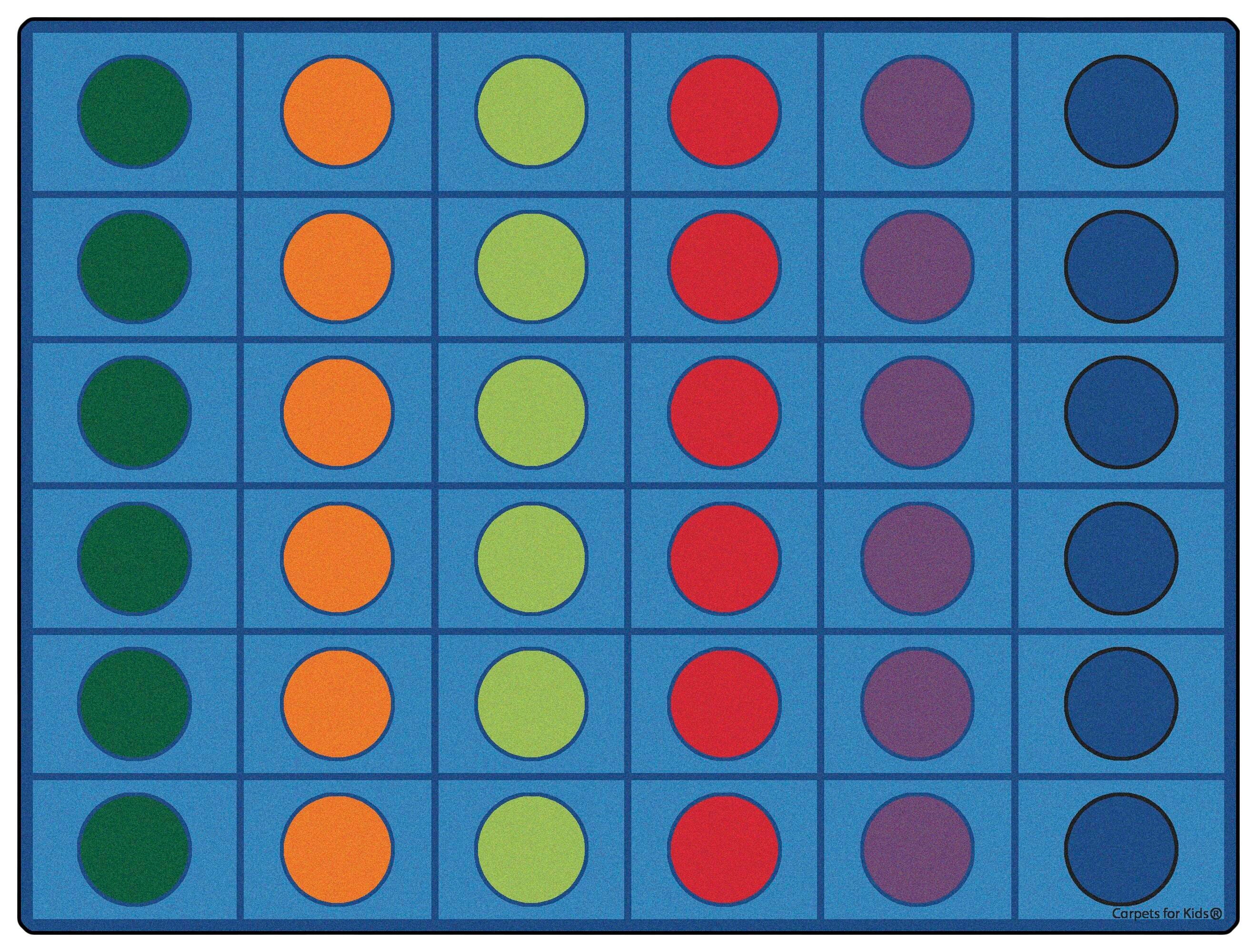 Rows of primary-colored circles create a fun place for children of all ages to sit and learn. This classroom carpet has seating for either 30 or 33, depending on the size selected when ordered.