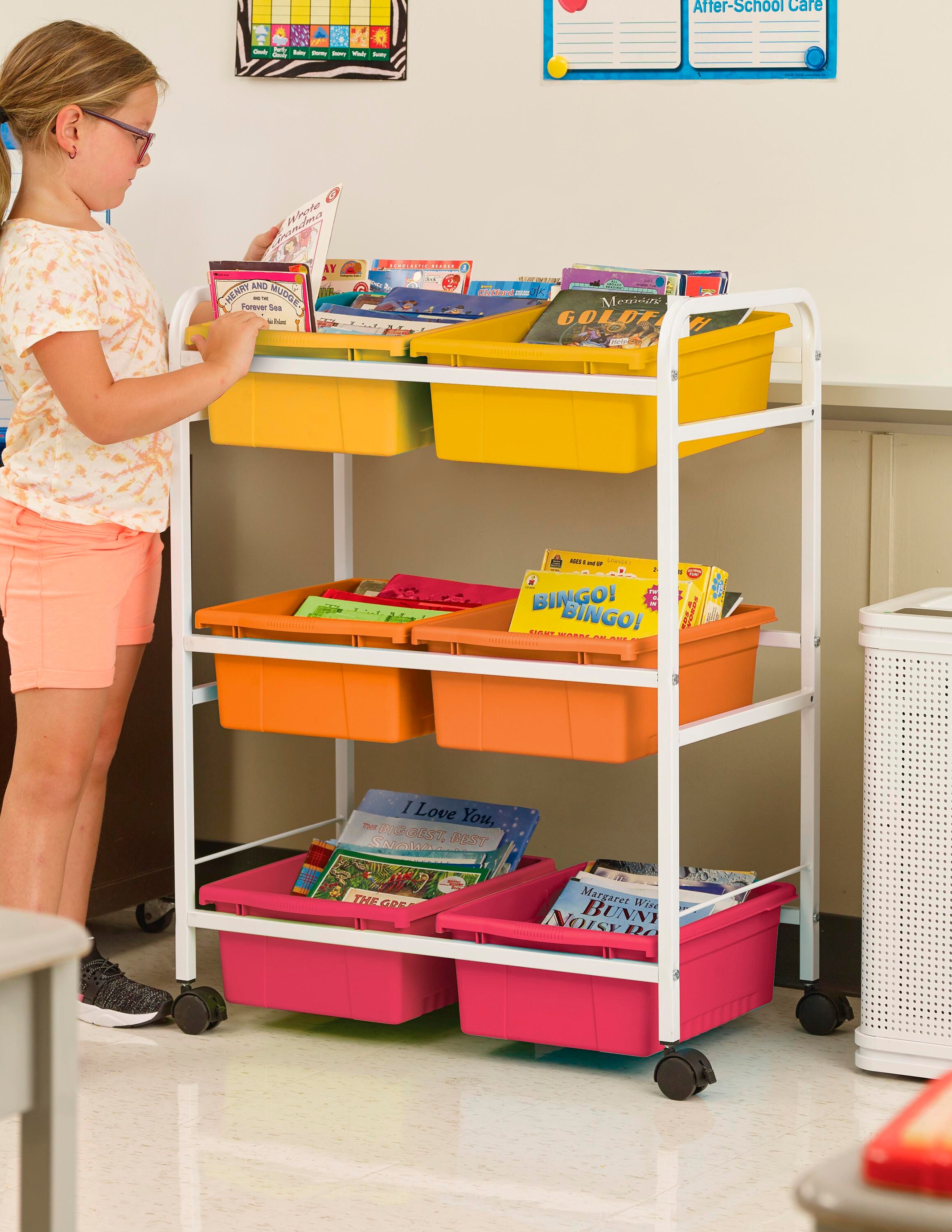 Copernicus Small Book Browser Cart with Vibrant Warm Tubs, 28 x 15-3/4 x 36-1/2 Inches