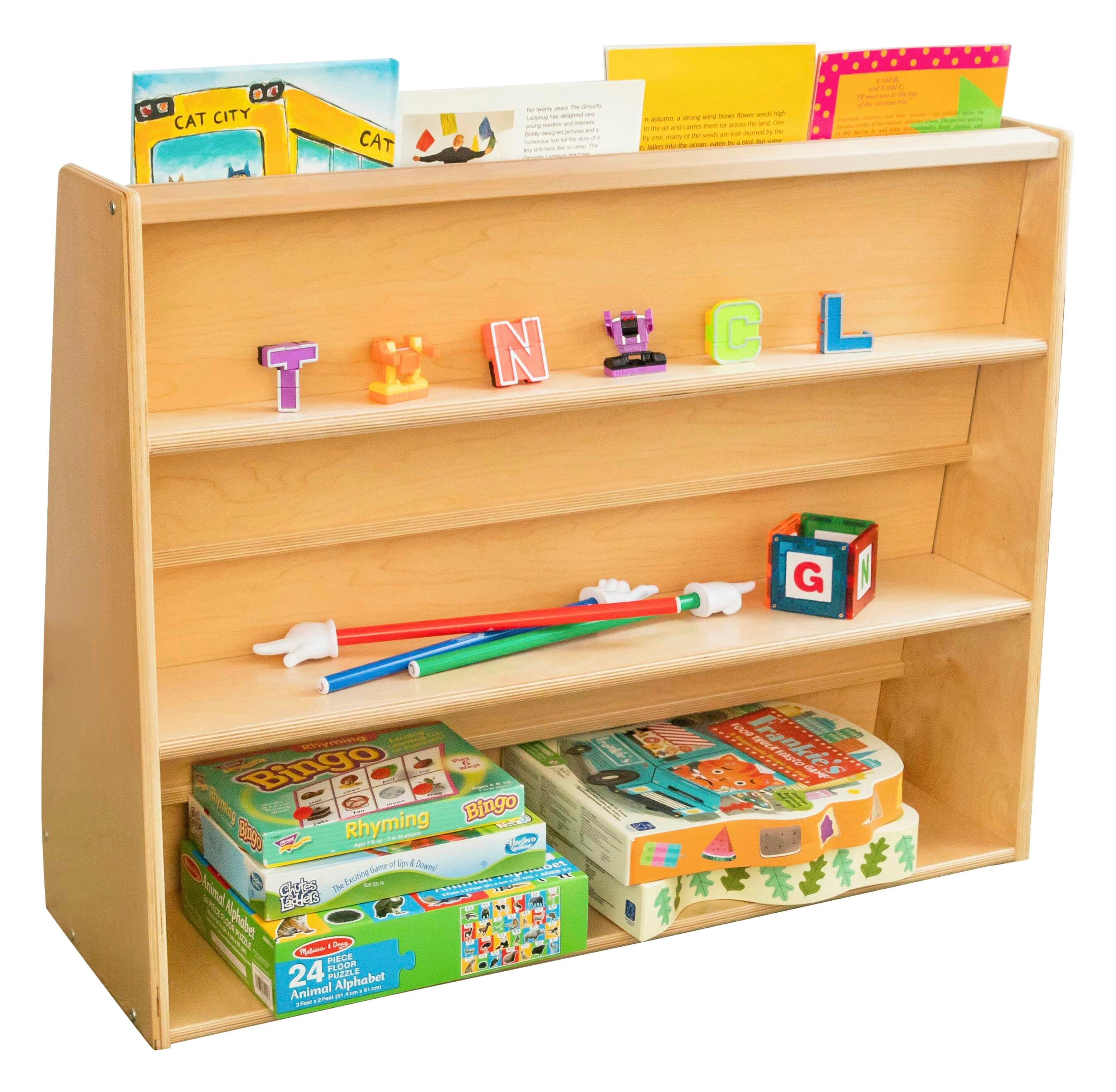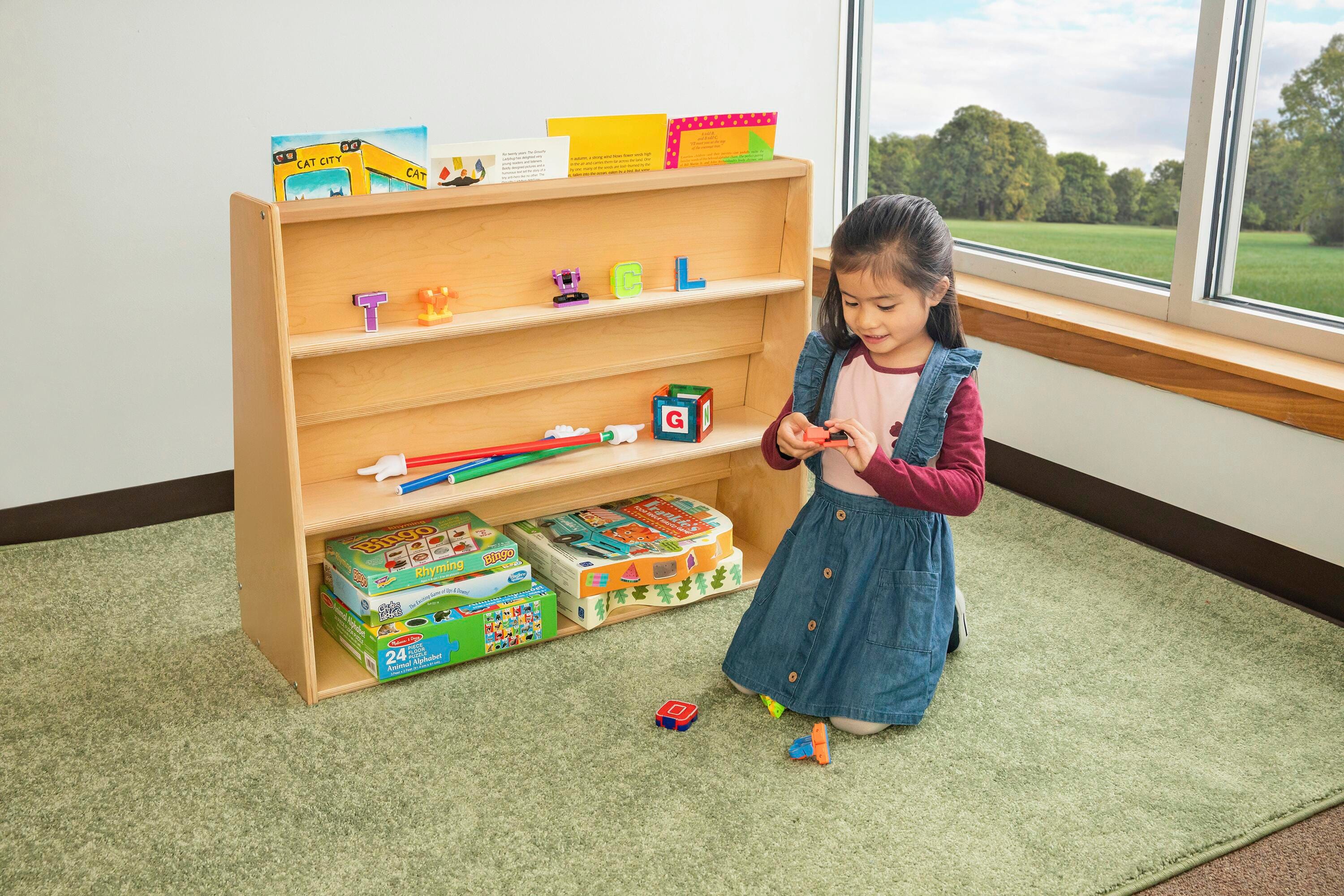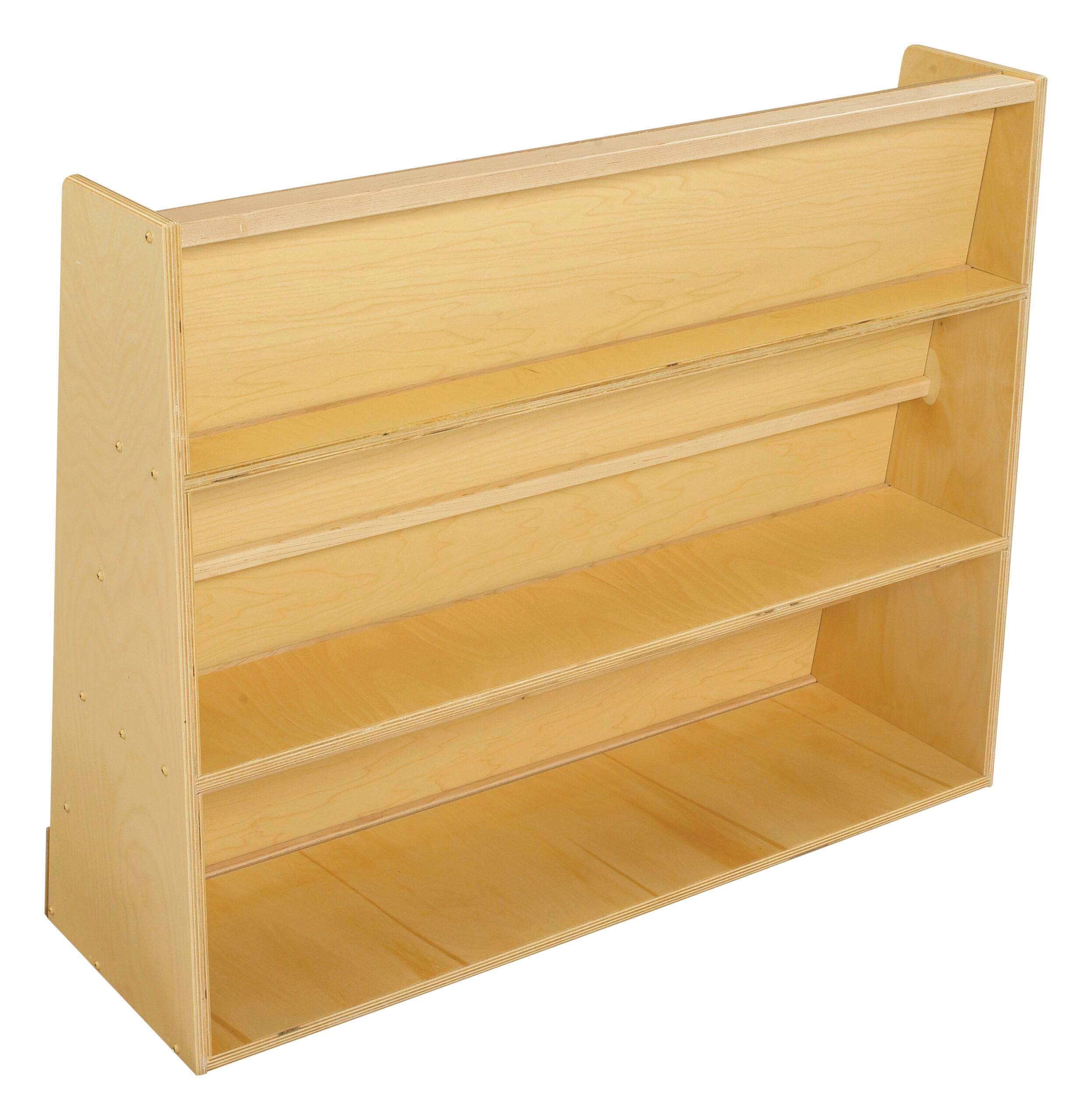 Description Childcraft® 5-Shelf Book Stand Display provides a durable and functional storage solution for books and learning materials. The front side features five slanted hardboard shelves, ideal for displaying picture books, magazines, and easy browsing. The back side offers three long open shelves for additional storage, accommodating bins, baskets, or classroom supplies. Constructed from sturdy birch veneer with an intelligent dado construction and a smooth, UV-cured acrylic finish, this wooden bookshelf resists stains, marks, and frequent cleaning. Ships fully assembled for immediate use. The classroom bookcase measures 36 W x 12-3/4 D x 29 H inches.Features Dual-sided design with five slanted shelves for a front-facing book display and three open shelves on the back for additional classroom storage Sturdy birch veneer construction with a UV-cured acrylic finish resists wear, stains, and daily use Deep storage shelves on the backside of the bookshelf display accommodate bins, baskets, or classroom supplies GREENGUARD Gold Certified for use in children’s rooms and settings Team up with Childcraft to design and outfit your early education environment; we have 75+ years of experience and offer a limited lifetime warranty Committed to the 5C’s of Childcraft: Child-safe, Crafted with quality, Constructed for durability, Complete solutions, and Cleanable design Includes 1 Double-Sided Book Display Stand