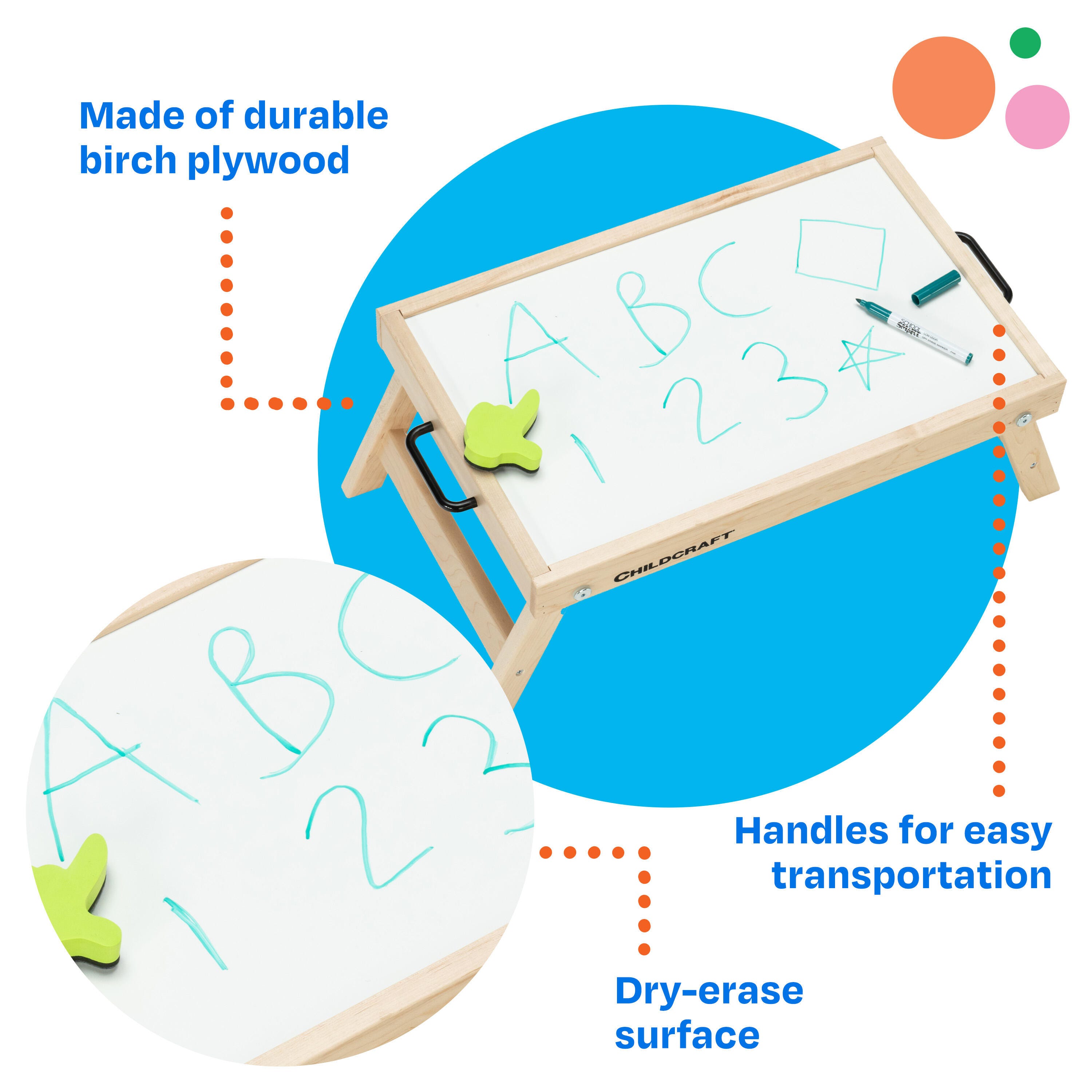 Childcraft Folding Wood Tray with Dry Erase Markerboard, Folding Legs, 25-1/2 x 13-3/4 x 9 Inches