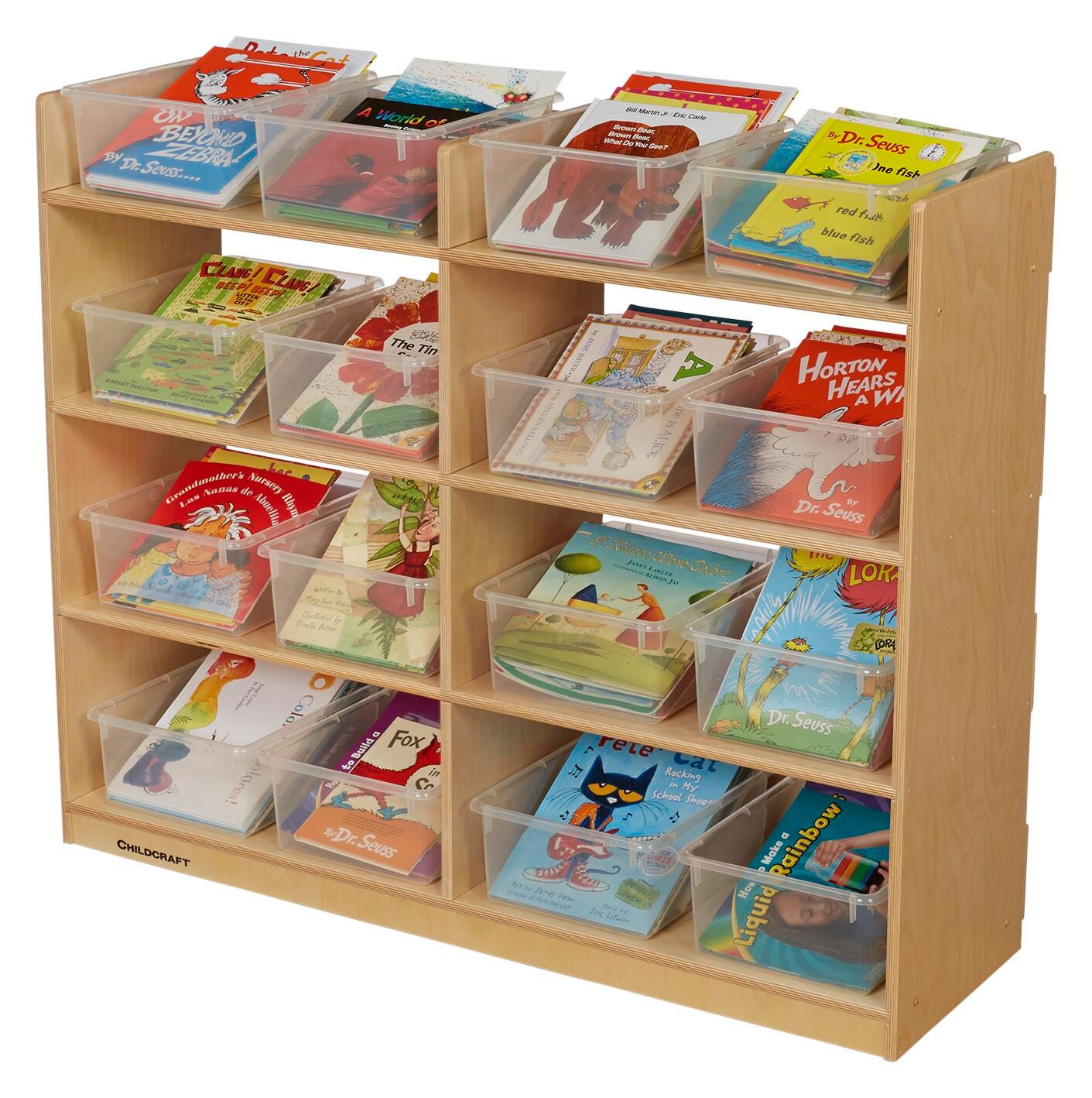 Childcraft Mobile Book Storage Unit, 16 Translucent Bins, 47-3/4 x 14-1/4 x 42 Inches