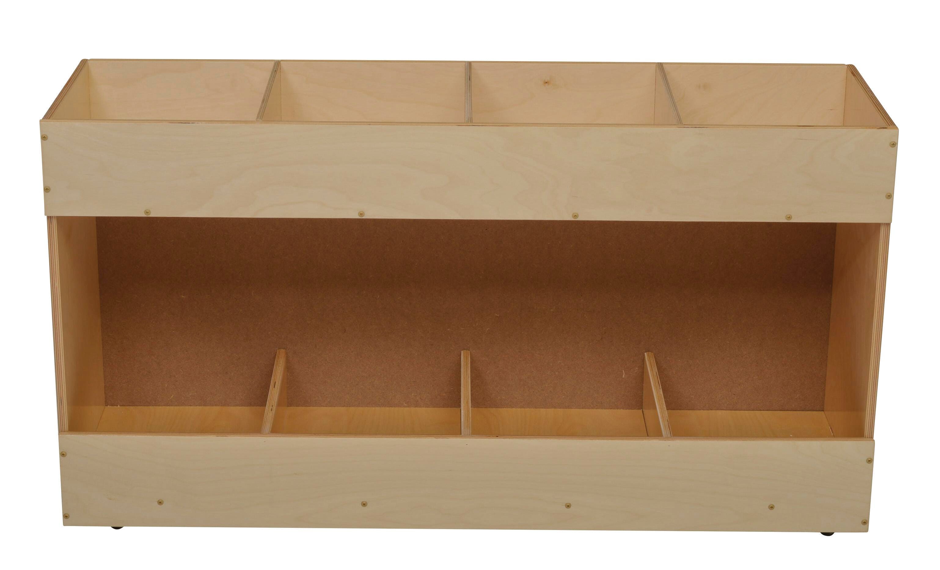 The Childcraft® Single-Sided Mobile Book Center Bookcase provides a spacious and durable storage solution for books and learning materials. Featuring eight open compartments, this book organizer keeps storybooks, textbooks, and other materials neatly displayed and within reach. Built from sturdy birch plywood with a smooth, UV-cured acrylic finish, this classroom bookshelf resists stains, marks, and frequent cleaning. Heavy-duty casters ensure effortless mobility, allowing teachers and caregivers to rearrange spaces as needed. Arrives fully assembled for immediate use. This wooden bookcase on wheels measures 47-3/4 W x 14-1/4 D x 26 H inches.Features