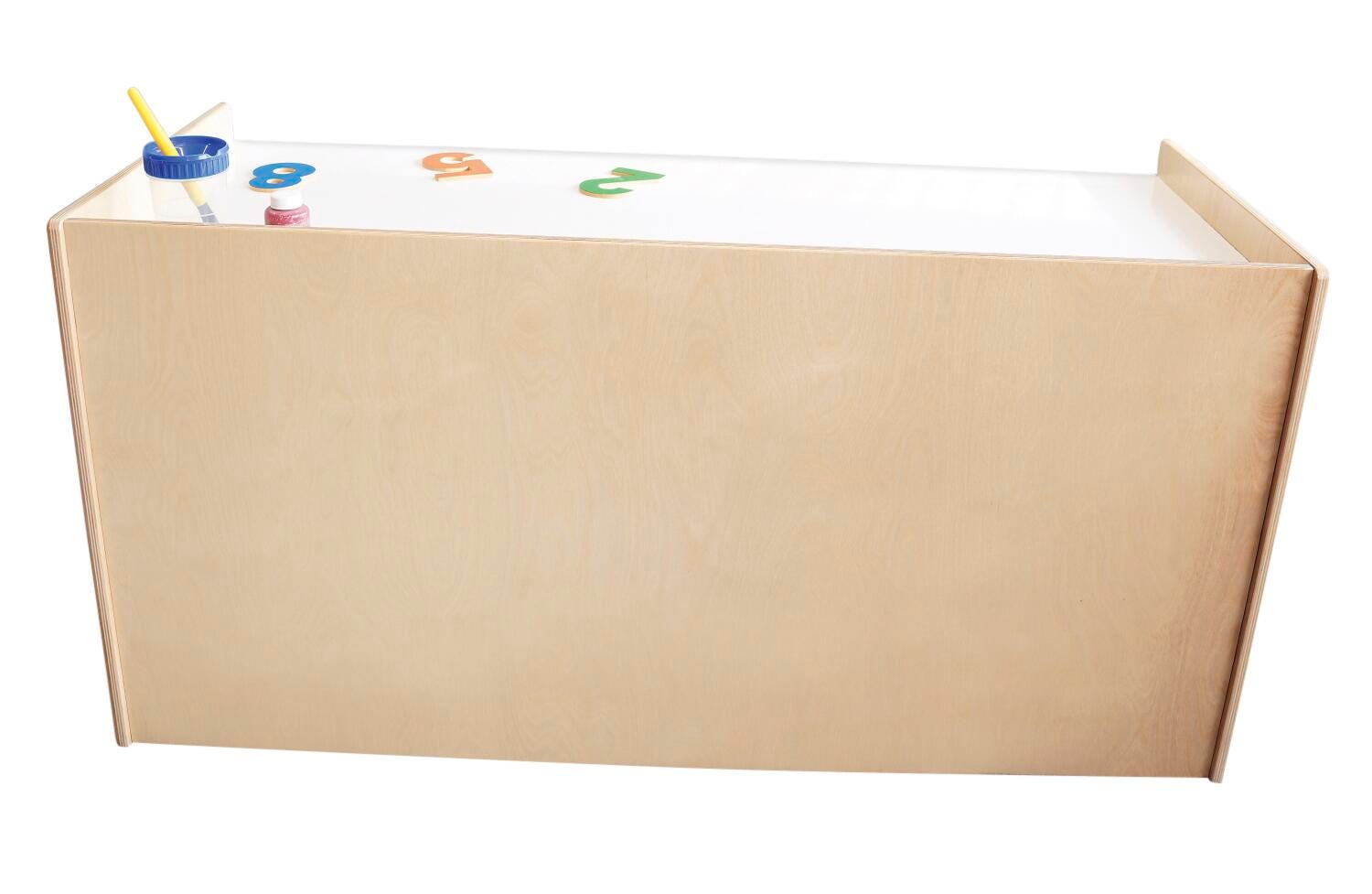 This innovative desk has two bays to accommodate two students, a three-shelf center console that includes two Gratnell trays, a high-quality non-ghosting markerboard surface, and a lip around the top perimeter to keep everything organized.Features