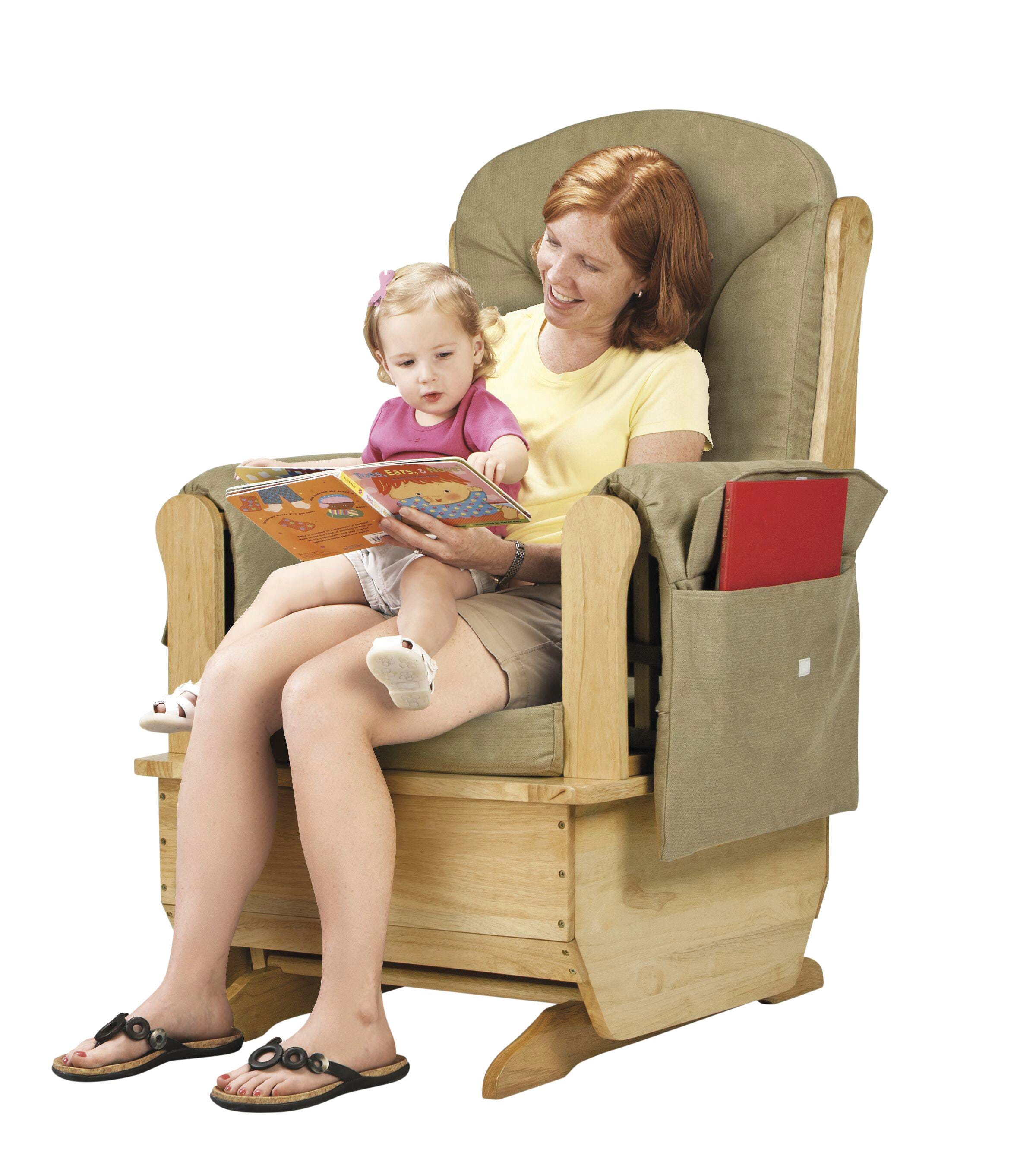 Description Jonti-Craft Glider Rocker featuring a special design is enclosed on the front and sides to keep little fingers and toes safe. Rocker with heavy-duty construction has super smooth, quiet glide mechanism that is specially designed for youngsters to enjoy. Rocker measuring 30 W x 23-1/2 D x 43-1/2 H inches has a 20-inch, extra-roomy seat and is tip-resistant. Armrests offer enhanced comfort and include pockets with covers for convenient storage. Beige green seat cushion cover made from 100% polyester is machine washable and meets CA-117 fire standards.