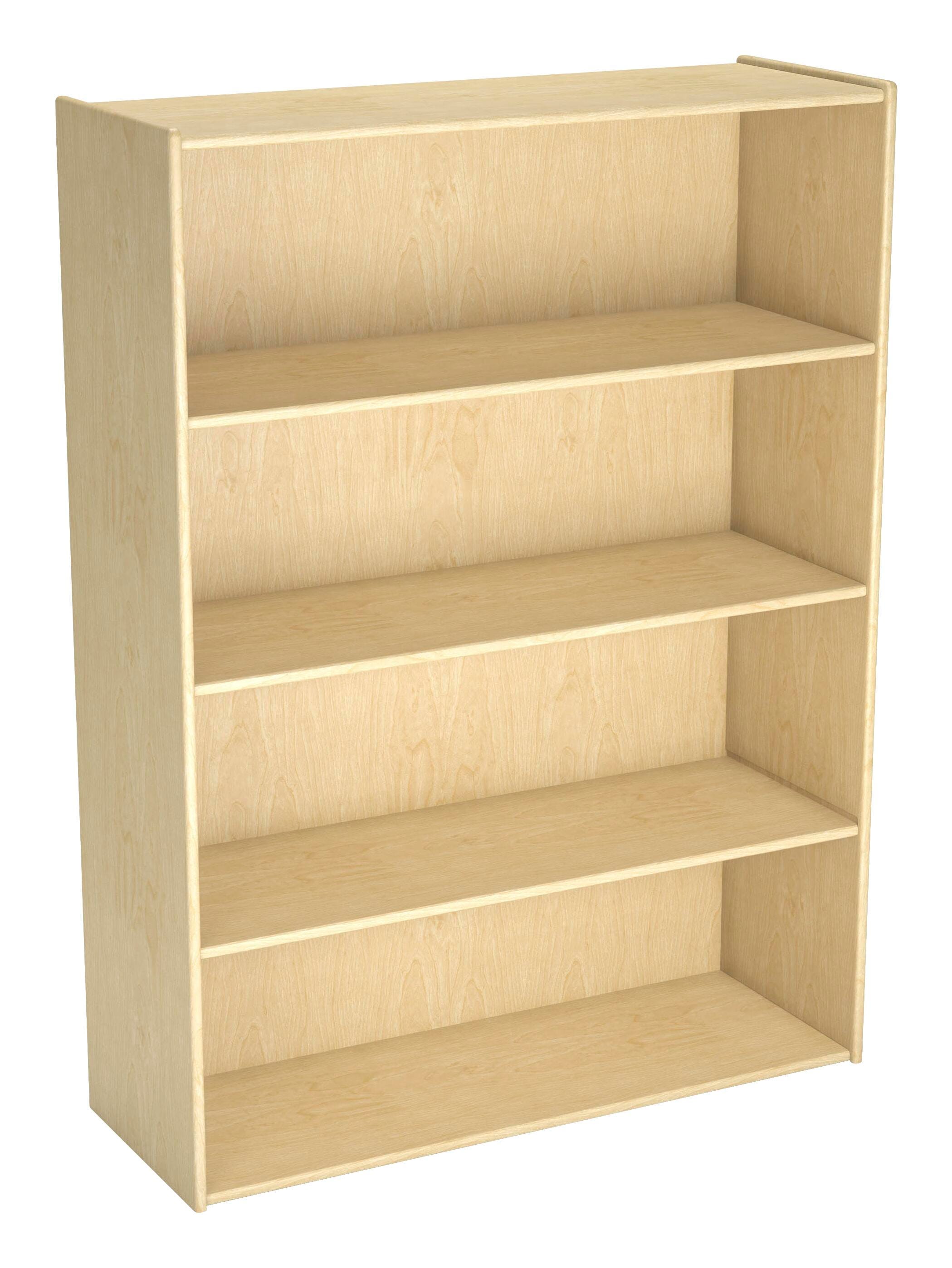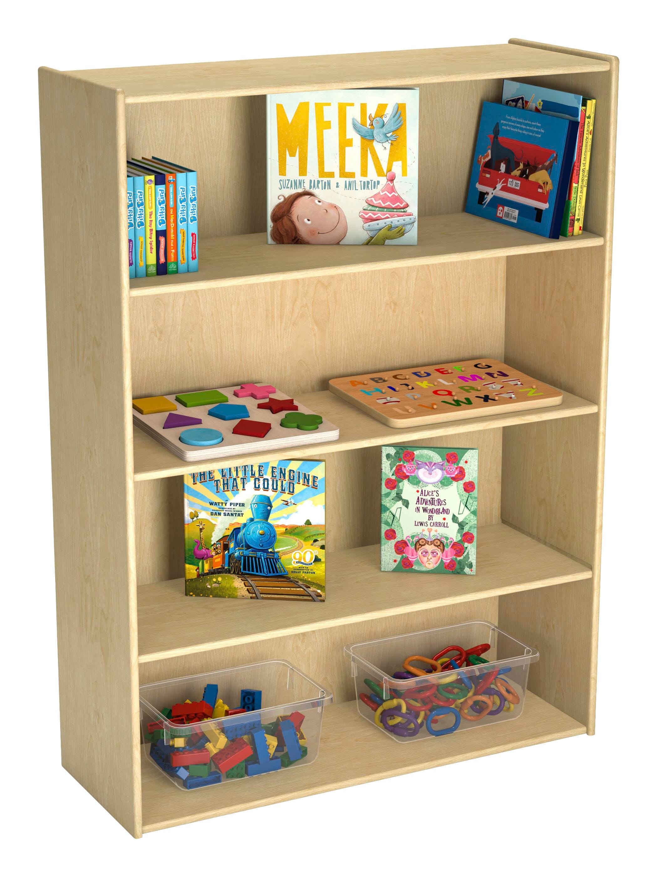 The Childcraft® 4-Shelf Storage Unit is designed for classrooms, playrooms, libraries, and childcare centers, providing an easy-access solution for young learners. Featuring deep, sturdy shelves, this wooden bookcase accommodates books, puzzles, blocks, and more. Constructed from 5/8-inch thick, 11-ply birch plywood, it offers exceptional durability and stability, while the smooth finish and recessed hardboard back panels provide an attractive and functional design. Shelves are perfectly sized for little hands, encouraging independence in organization. Measures 35-3/4 W x 13 D x 48 H inches.Features