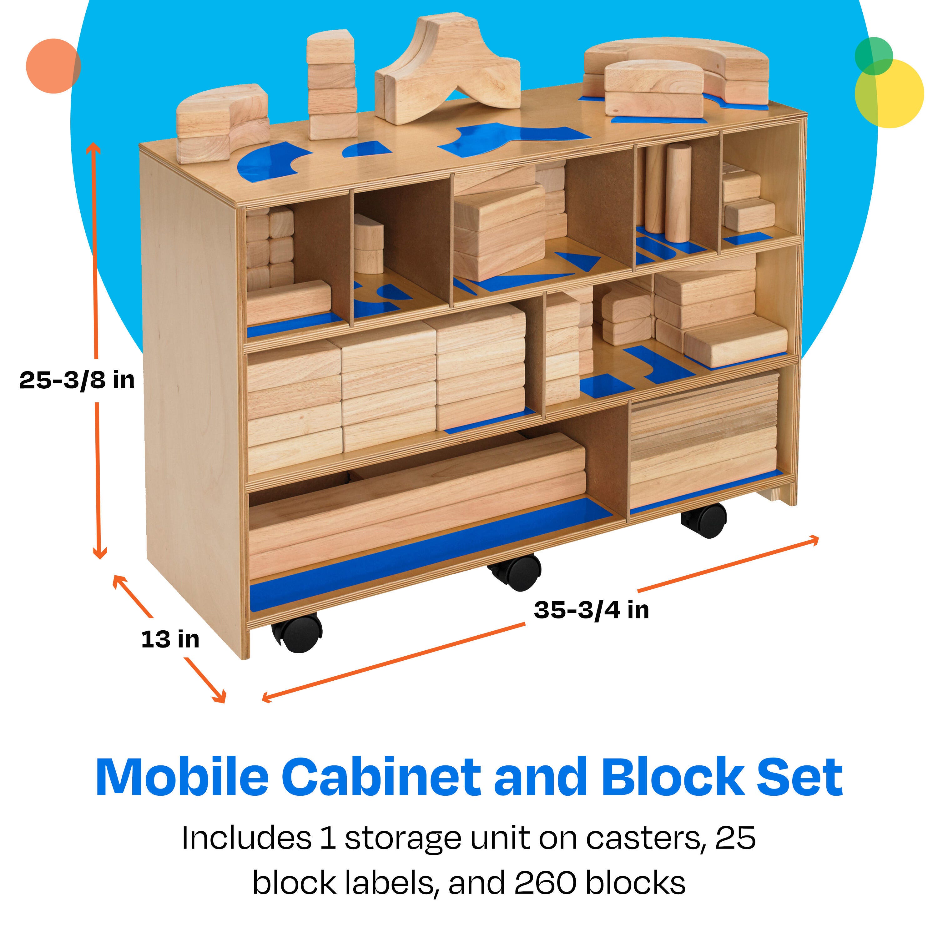 Keep your building blocks neat and organized with this building block set, which includes the mobile storage cabinet, label kit, and 260 wooden blocks.