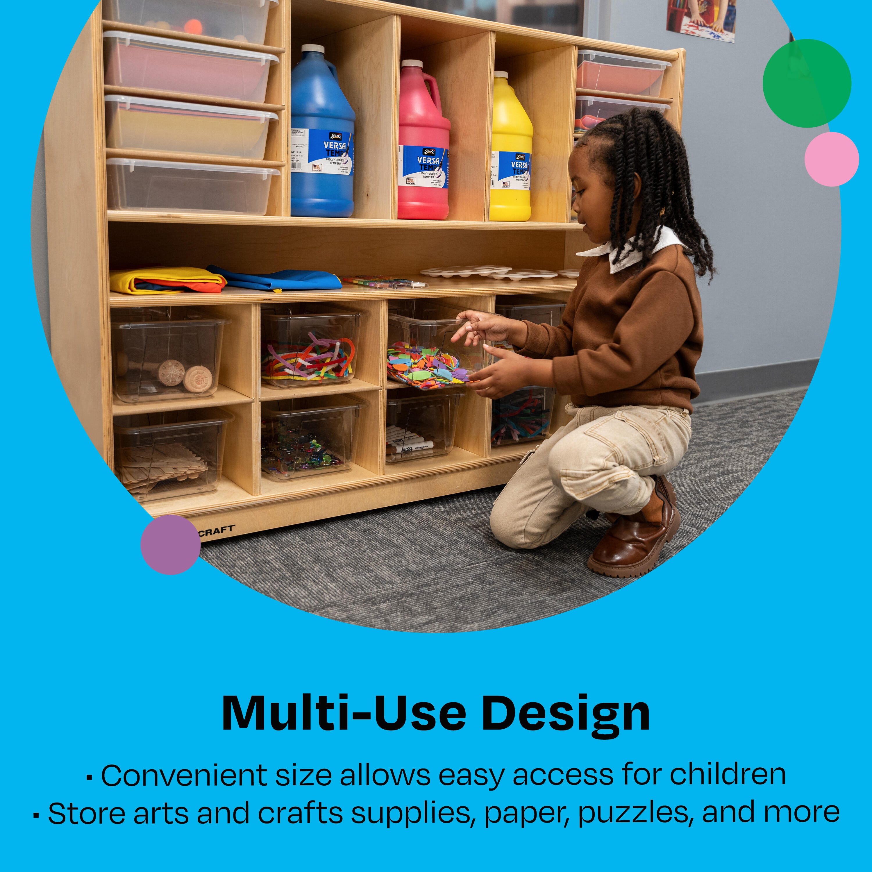 A convenient size allows children to have easy access to their favorite items