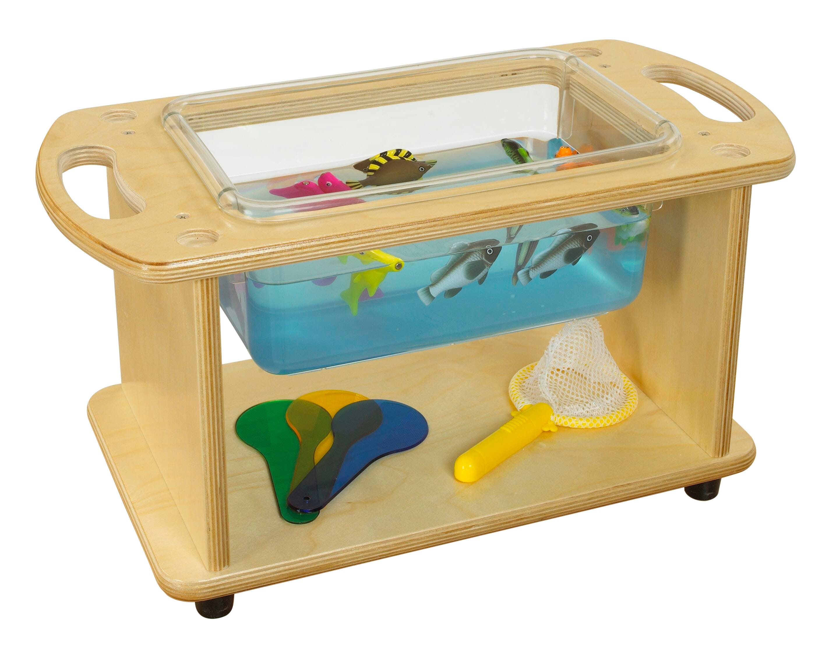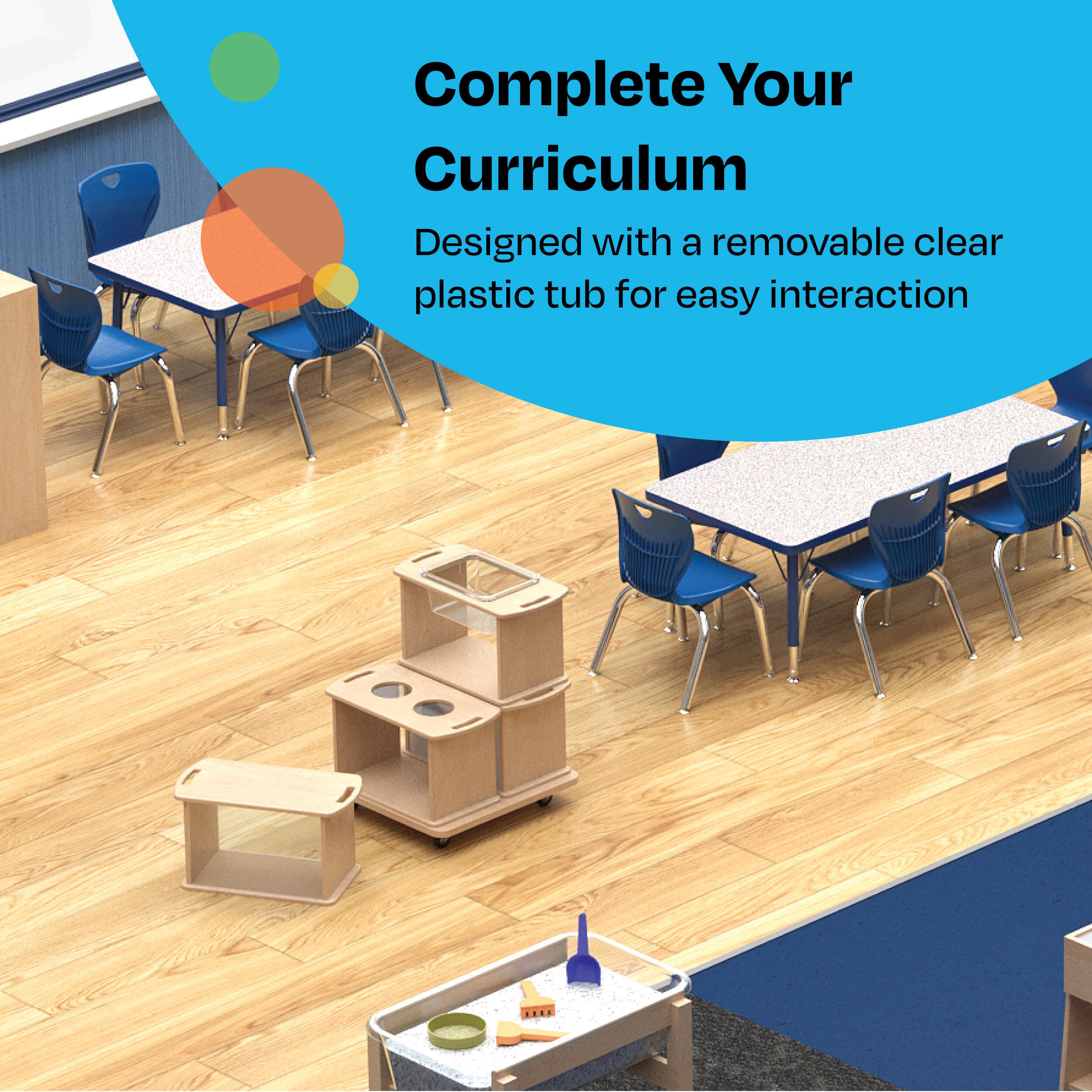 Childcraft® Stacking Soil and Water Science Module Sensory Table includes a large clear tray that can be filled with dry or wet objects and removed for easy cleaning. Use the sand and water table for hands-on learning and exploration. The portable science cart features a sensory experience for young children, and has smooth handles for easy carrying and feet that nest for stacking with our other small tables. The interactive activity center is great for building fine motor skills and developing sensory stimulation. Crafted for long-lasting use, this science station is made of durable birch plywood that’s easy to wipe clean. Comes fully assembled. This sensory table measures 19-1/2 W x 10 D x 10-1/4 H inches.