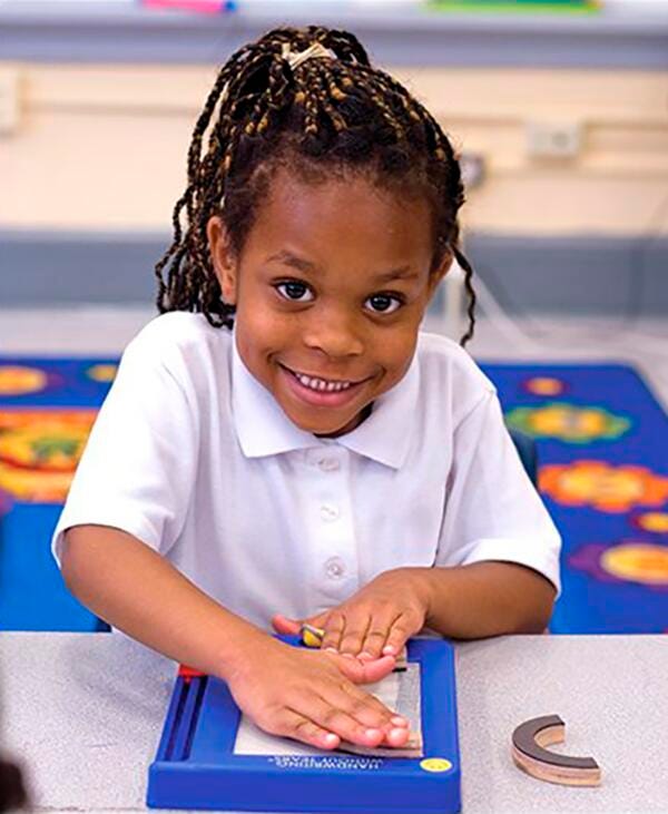 Using the chalk-like tool children trace letters and numbers or form them on their own