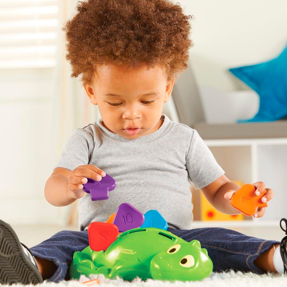 The friendliest fine motor manipulative for toddlers, this easygoing dinosaur comes with 10 pinchable, pullable scales, whose indented surfaces make it easy for children to build their pincer grasp, hand strength, and other essentials of fine motor skills development. Count up the scales, sort them into warm and cool colors, and more— with Steggy the Fine Motor Dino, there are always multiple ways to learn.