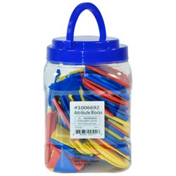 These 120-Piece Attribute Blocks a will make a great addition to your early education math lessons. There are 5 shapes, 2 sizes(large square features 2-61/64 ich sides), 3 colors, and 2 thicknesses.Features