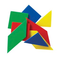 Tangrams are made from hard, smooth plastic with 4 bright colors (Red, Blue, Yellow, Green) for children to learn the characteristics of each of the tangram shapes, congruent and similar shapes, symmetry, angles, area and fractions. Four colors, seven different shapes, 210 pieces in all. Packaging consists of 7 different shapes with single color packaged in a bag. Pieces measure 3.94 in x 3.94 in x 0.79 in (10 cm x 10 cm x 0.2 cm) each. Grades K to 6.Features