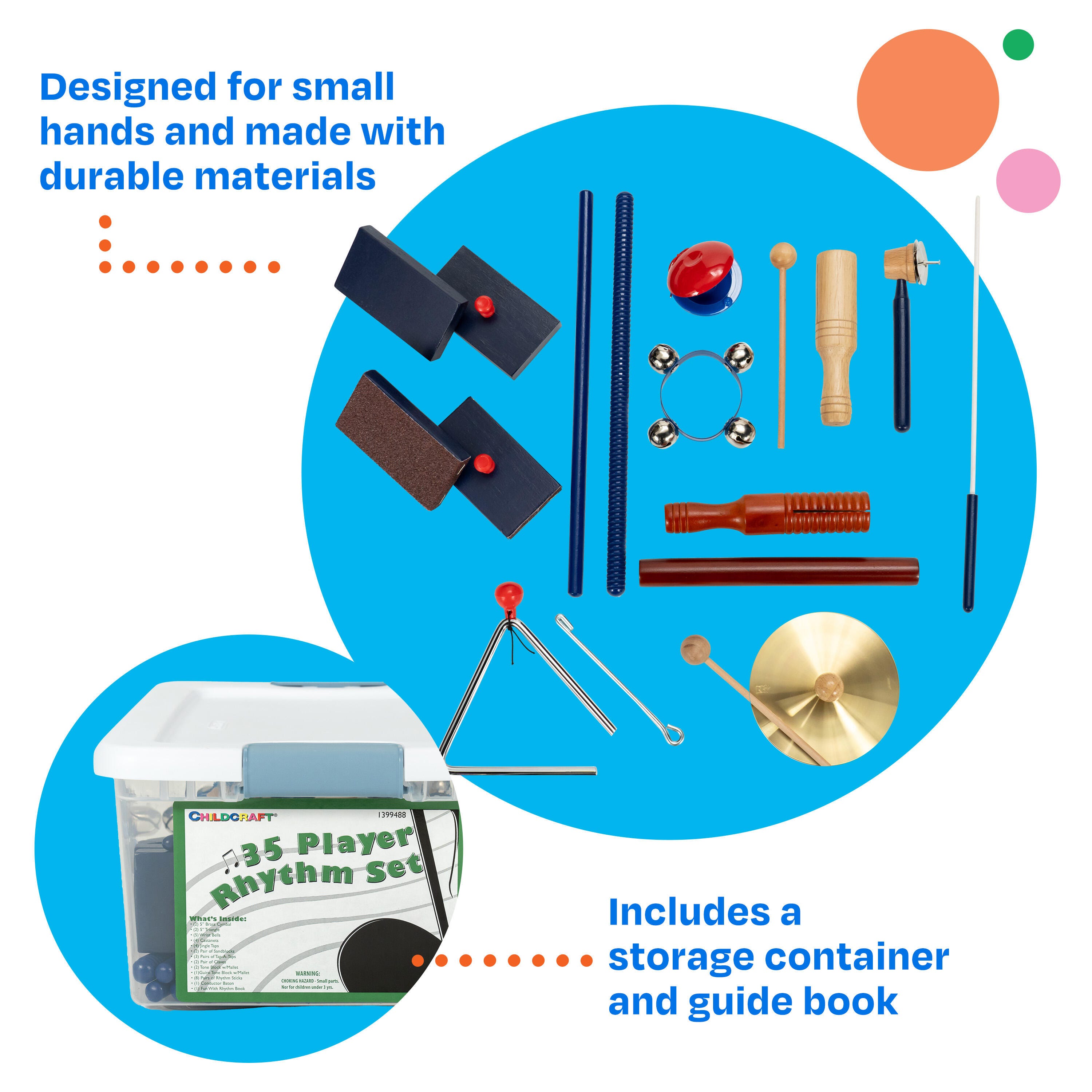 Introduce young learners to the joy of music with this complete rhythm instrument for 35 players, perfect for classrooms, music rooms, and home learning environments.