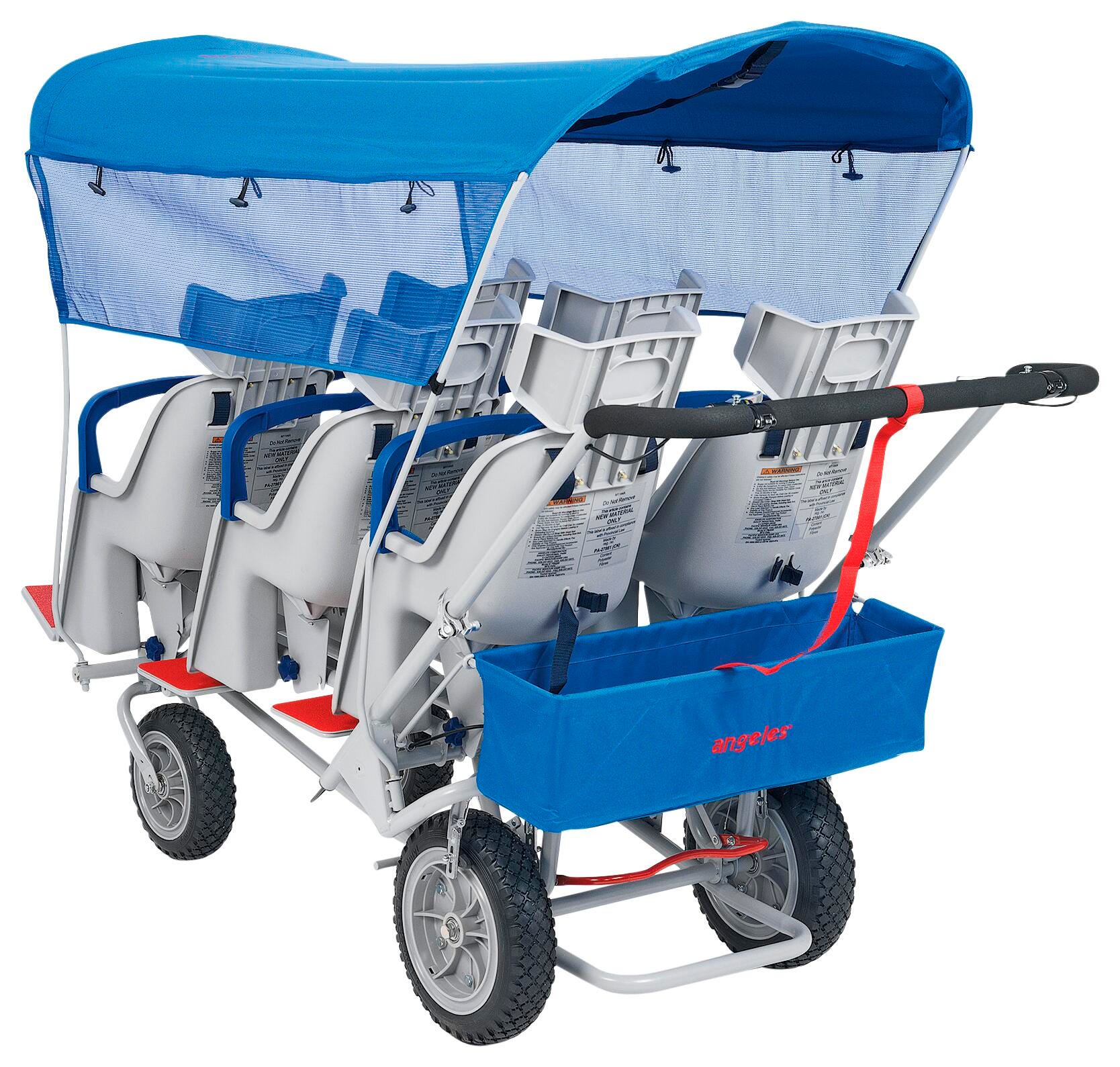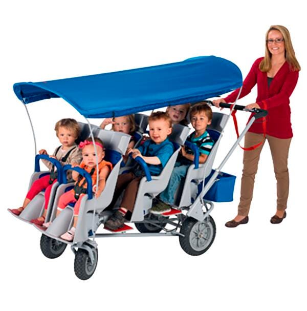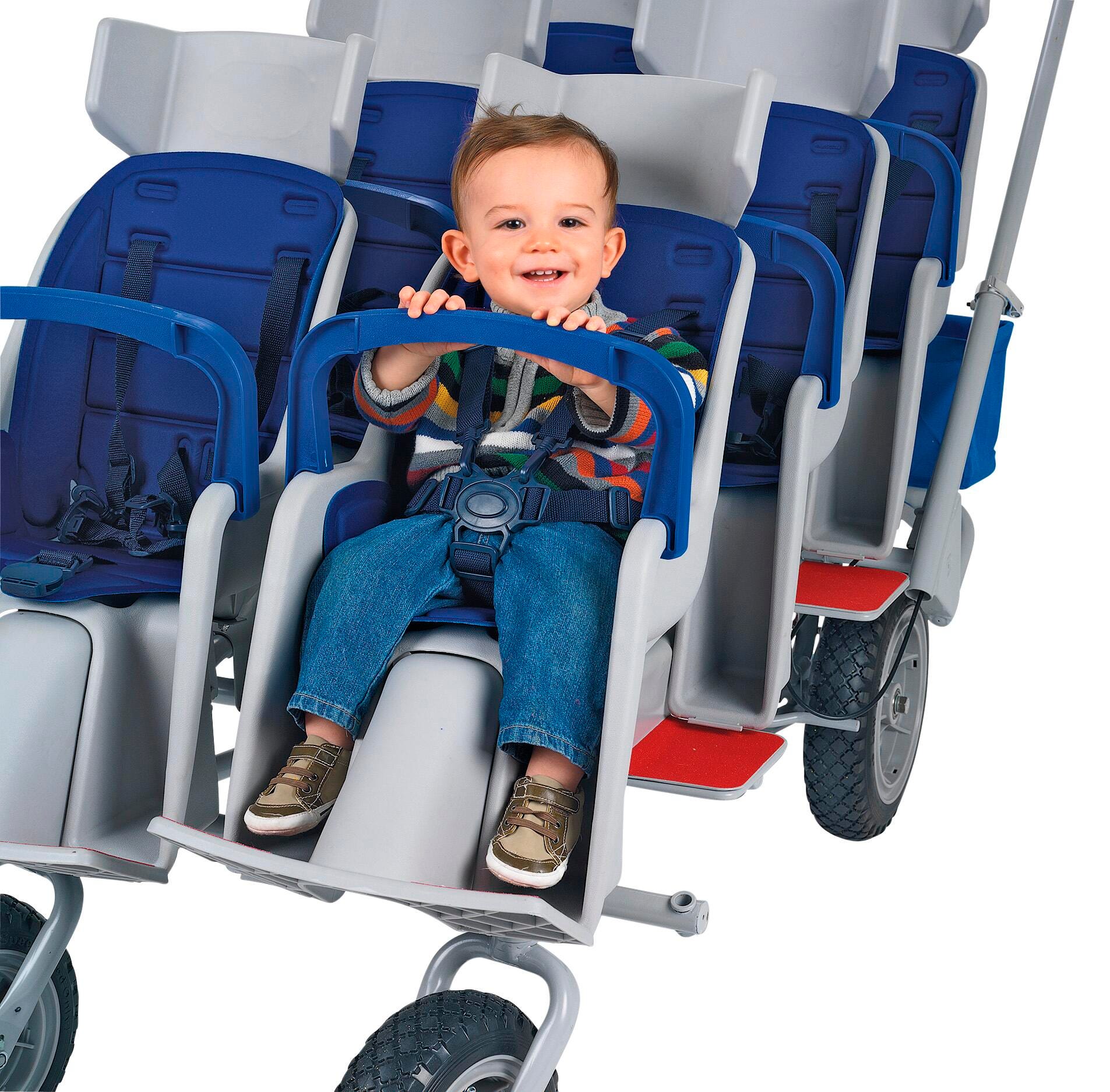Make transporting children easier with our RunAbout Stroller! Frame is welded with solid powder-coated steel for strength and durability. Adjustable seats recline 14° and accommodate up to 40 pounds each. Our five-point harness system is for superior safety. Water-and fade-resistant canopy with adjustable side sunshades is included. Stroller fits through standard doorways and requires easy assembly.