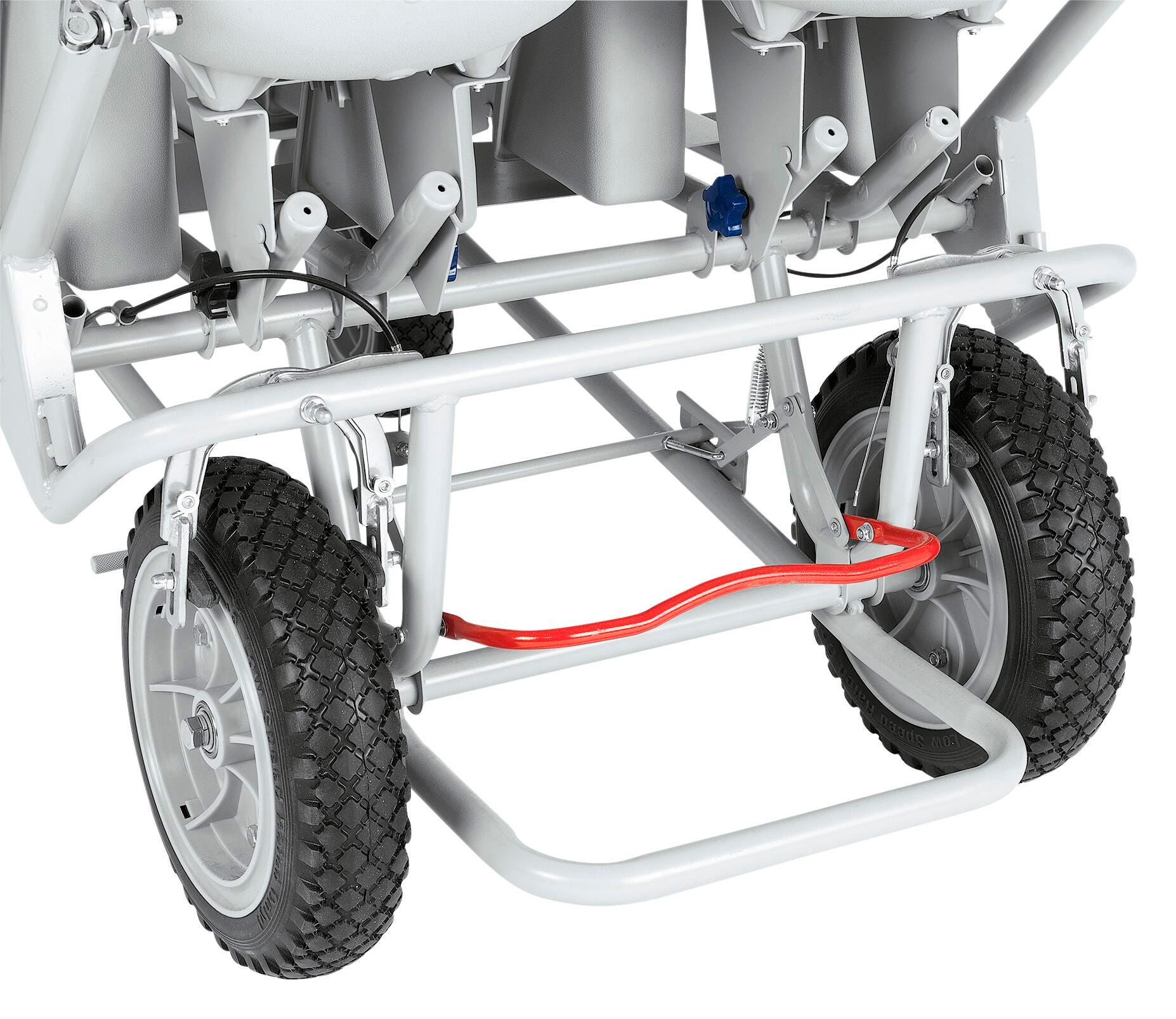 Tough, flat-free tires for consistent performance and spokeless wheels for easy mobility