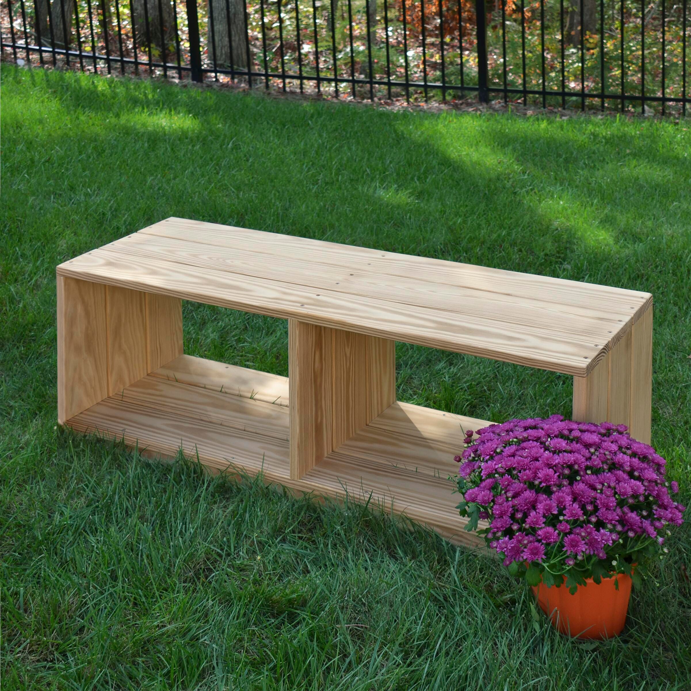 Description Offer both ample seating and storage for your children outside with the Wood Designs Outdoor Bench with Storage. The bench’s kid-friendly size and rustic design are a great addition to any garden or outdoor living space. The frame is constructed from durable and nontoxic acetylated wood. This type of wood defies the elements in any season from shrinking, warping and rotting. The edges and corners of this piece have been rounded for safety in any outdoor environment. Additionally, all hardware is stainless steel.Features Constructed from durable and nontoxic wood Acetylated wood resists shrinking, warping, and rotting Edges and corners rounded for safety Stainless-steel hardware 10-year warranty