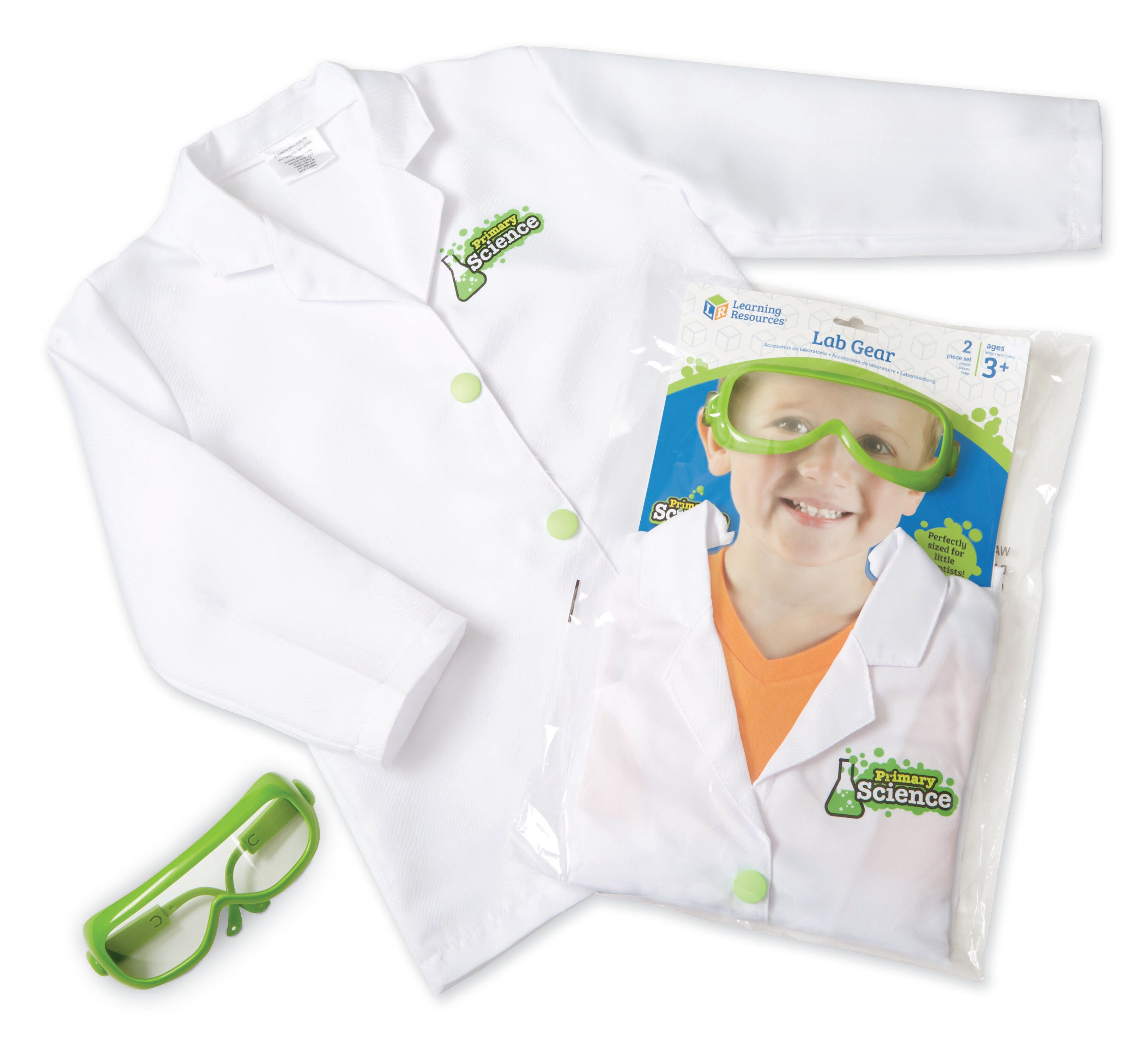 Description Learning Resources Primary Science Accessory Set fits most children ages 3 to 6 and is designed as part of the primary science line. Lab glasses and lab coat add the best dose of dramatic play to the science experiment. Set can make kids to feel more like scientists giving the fun accessories to complete their experience. Glasses are adjustable and coat is easy to take on or off with two oversized snaps.Features Glasses are adjustable Coat is easy to take on/off with two oversized snaps Intended for dramatic play only Includes: