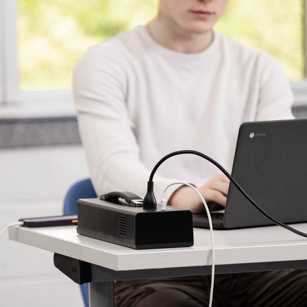 • When fully charged, rechargeable batter charges a laptop up to 2 times, a Chromebook or tablet up to 4 times, and a smartphone up to 14 times