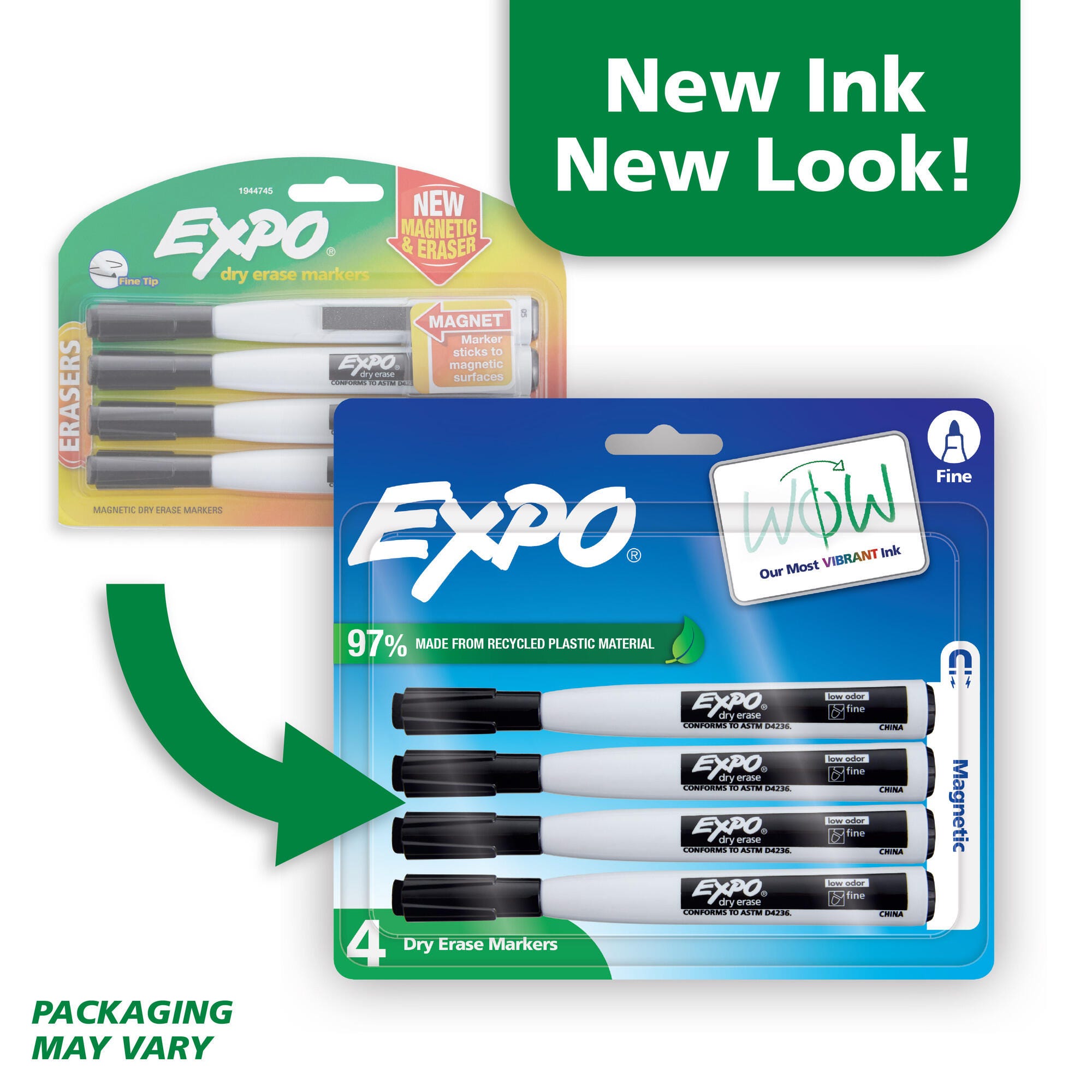EXPO Magnetic Dry Erase Markers, Fine Tip, Black, Pack of 4