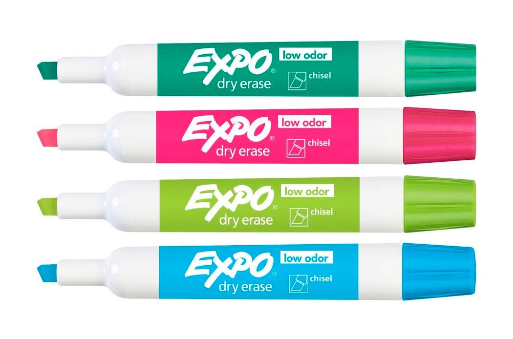 • EXPO Low Odor Dry Erase Markers, Chisel Tip, Assorted Fashion Colors, Set of 4