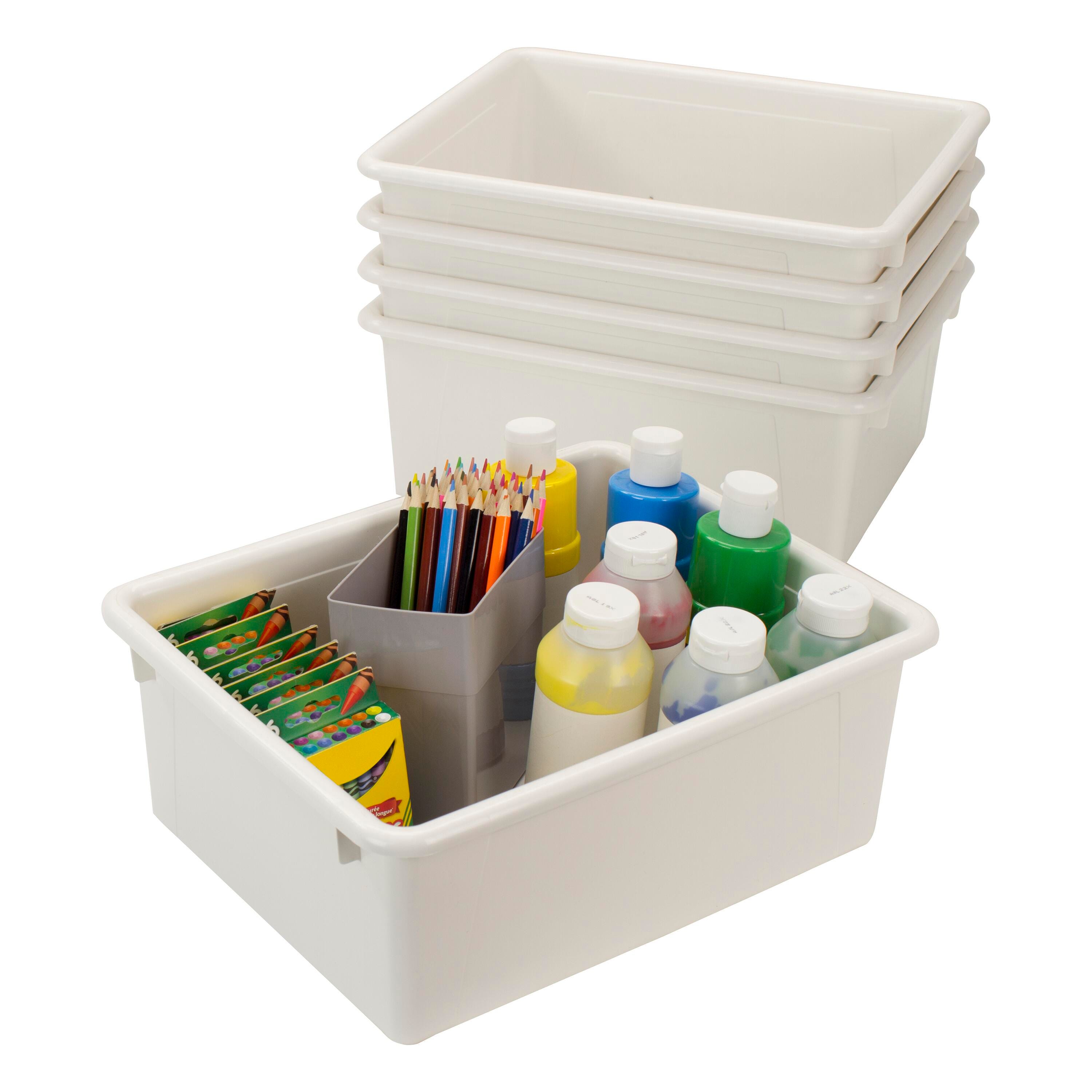School Smart white storage bins are designed to neatly organize all your letter-sized handouts, booklets, and papers. Our letter size plastic storage containers are made of nonporous plastic and are dishwasher-safe and drop-resistant. Whether you’re teaching STEM or STEAM, the solid colored bins help with classroom organization, and your imagination sets the limit. Use the plastic bins for elementary schools, kindergarten, preschool, childcare centers, and playrooms. Each box works well as a school supply storage bin, arts and crafts container, toy organizer, and more.