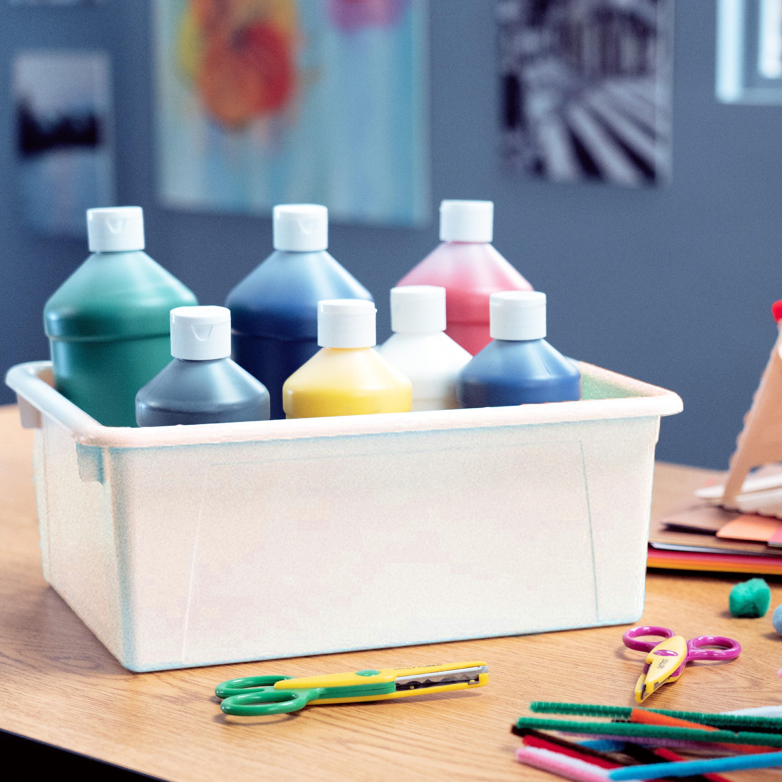 Mixed colors are perfect for classroom or childcare color coding, and other bin shades are also available (sold separately)