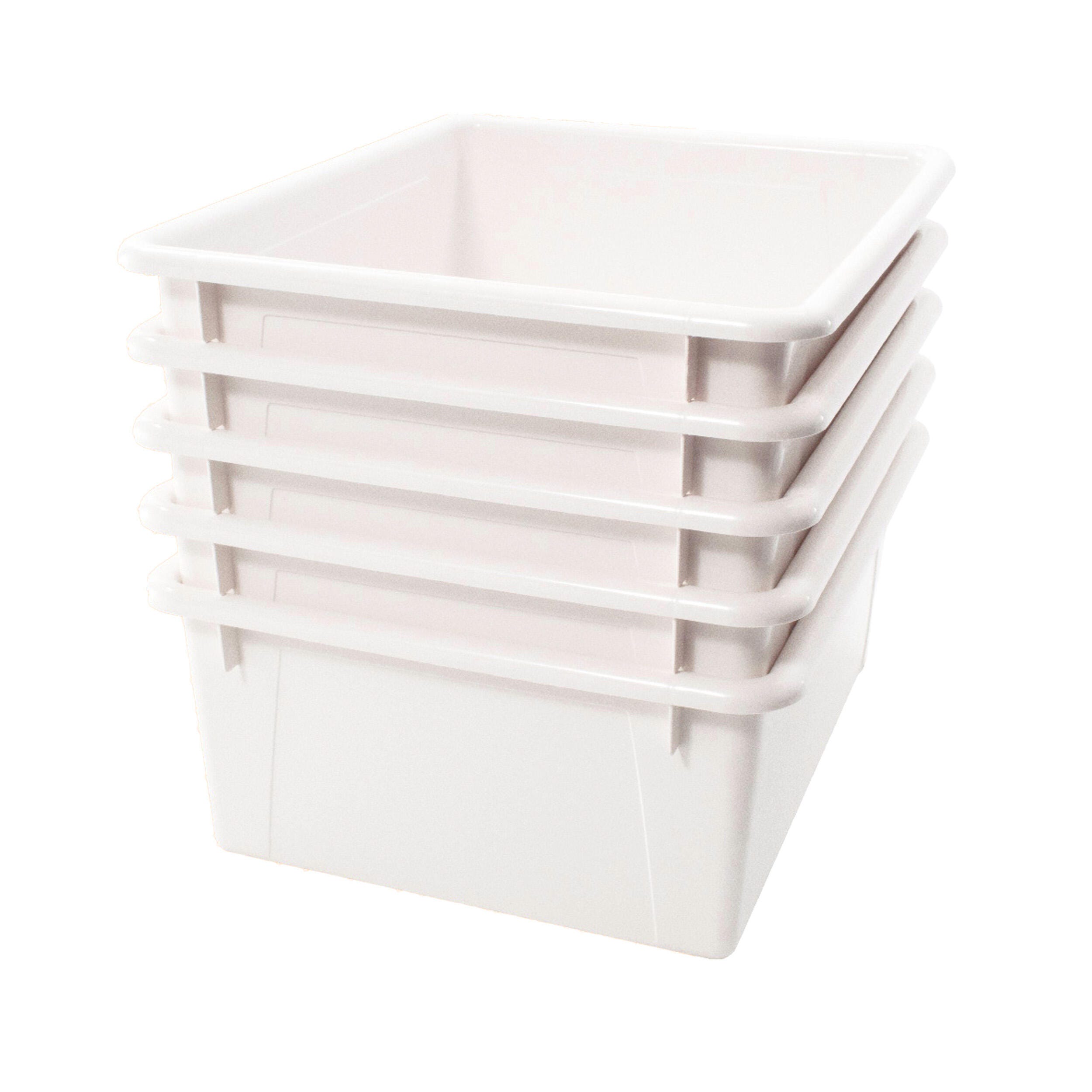 School Smart Deep Storage Bins, 10-3/4 x 13-3/8 x 5-1/4 Inches, White, Pack of 5