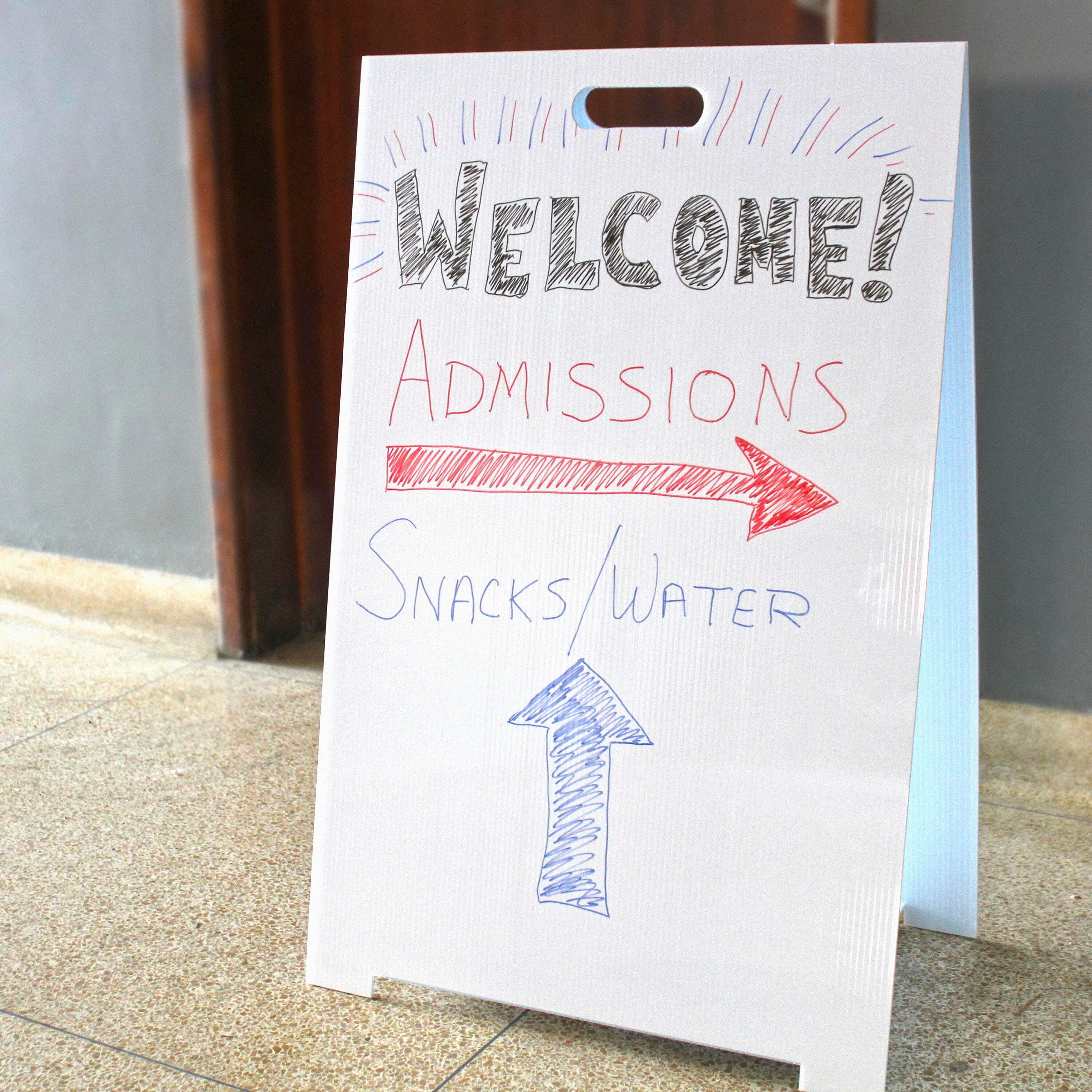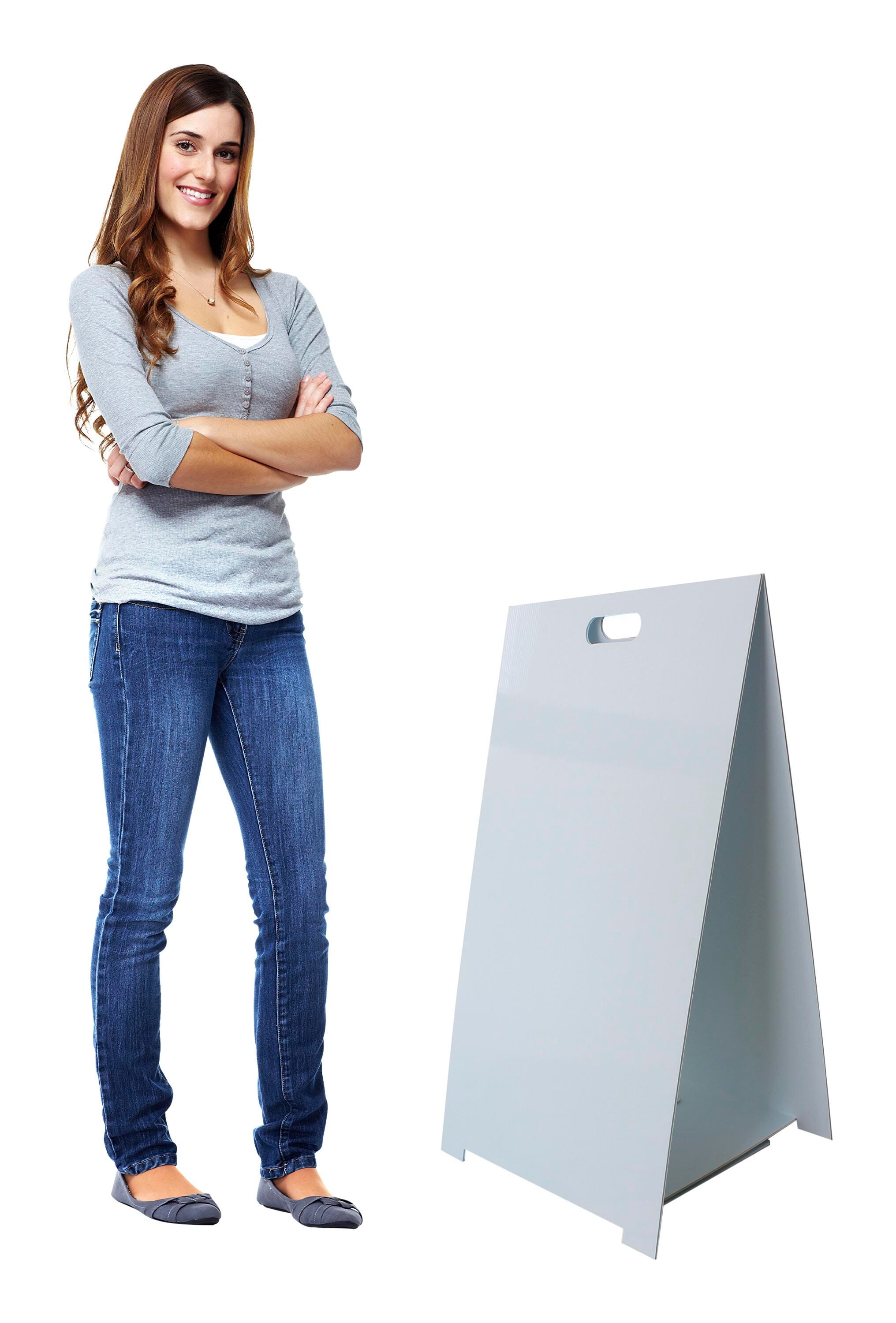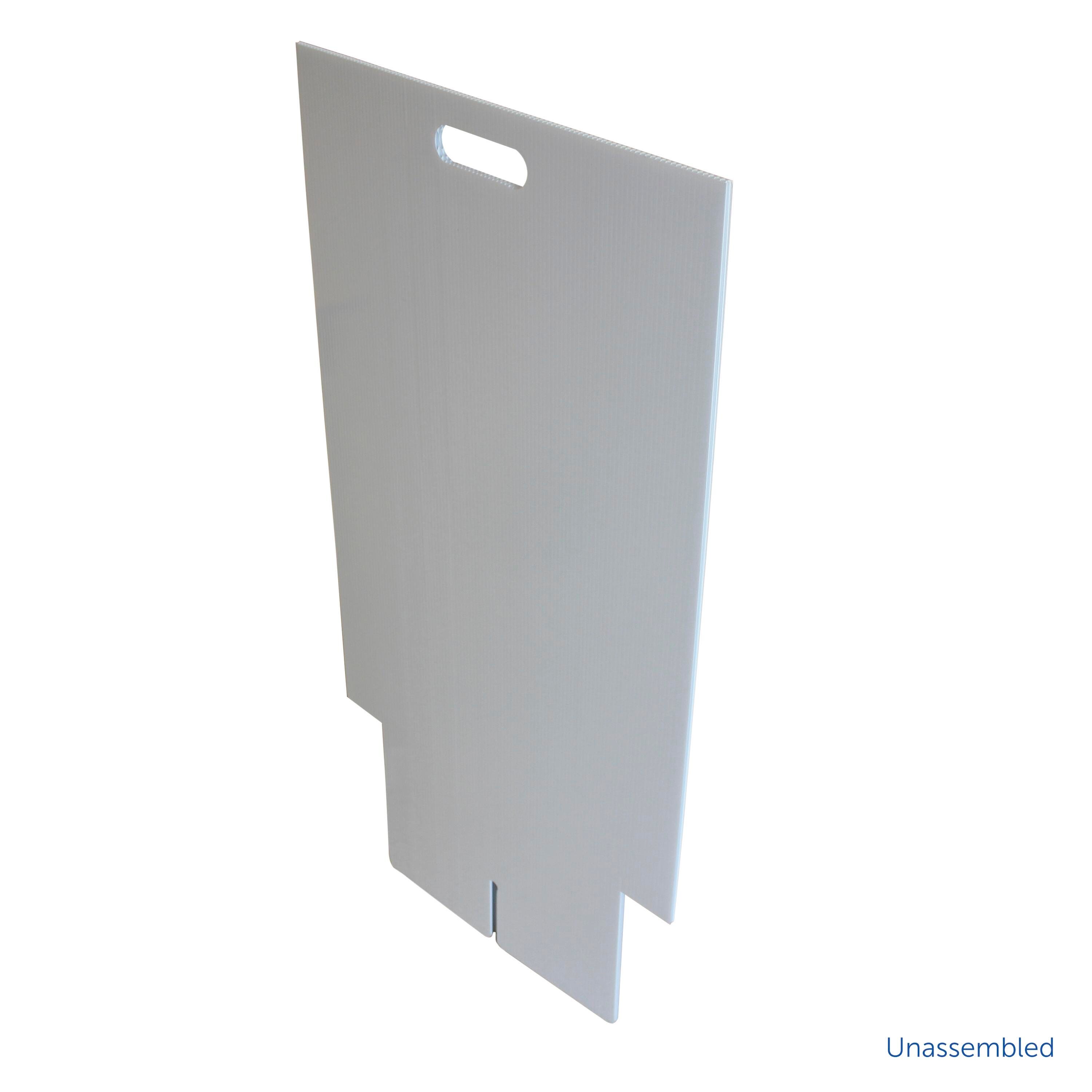 This marquee easel is the perfect sturdy and lightweight solution for displaying announcements, menus, messages, and much more. Constructed from 100% recycled and recyclable corrugated plastic, it is easy to transport and folds flat for storage.