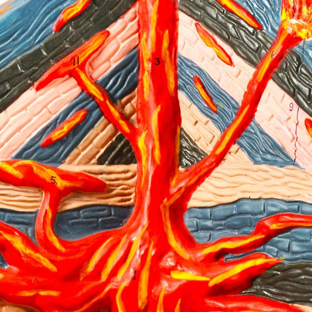 This detailed model gives students a clear understanding of the structure of volcanoes with internal and external views.
