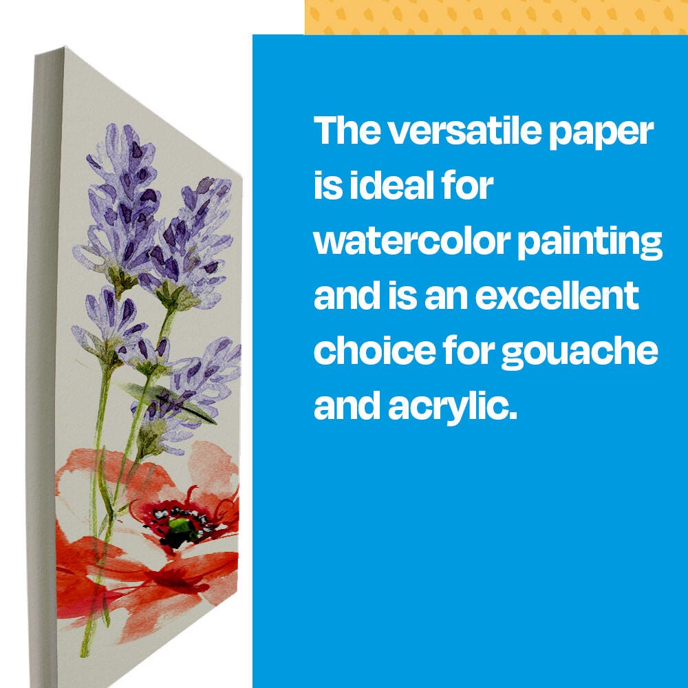 Fine-grain texture is smooth for precise work, holds mixed media and watercolor well, and dries quickly