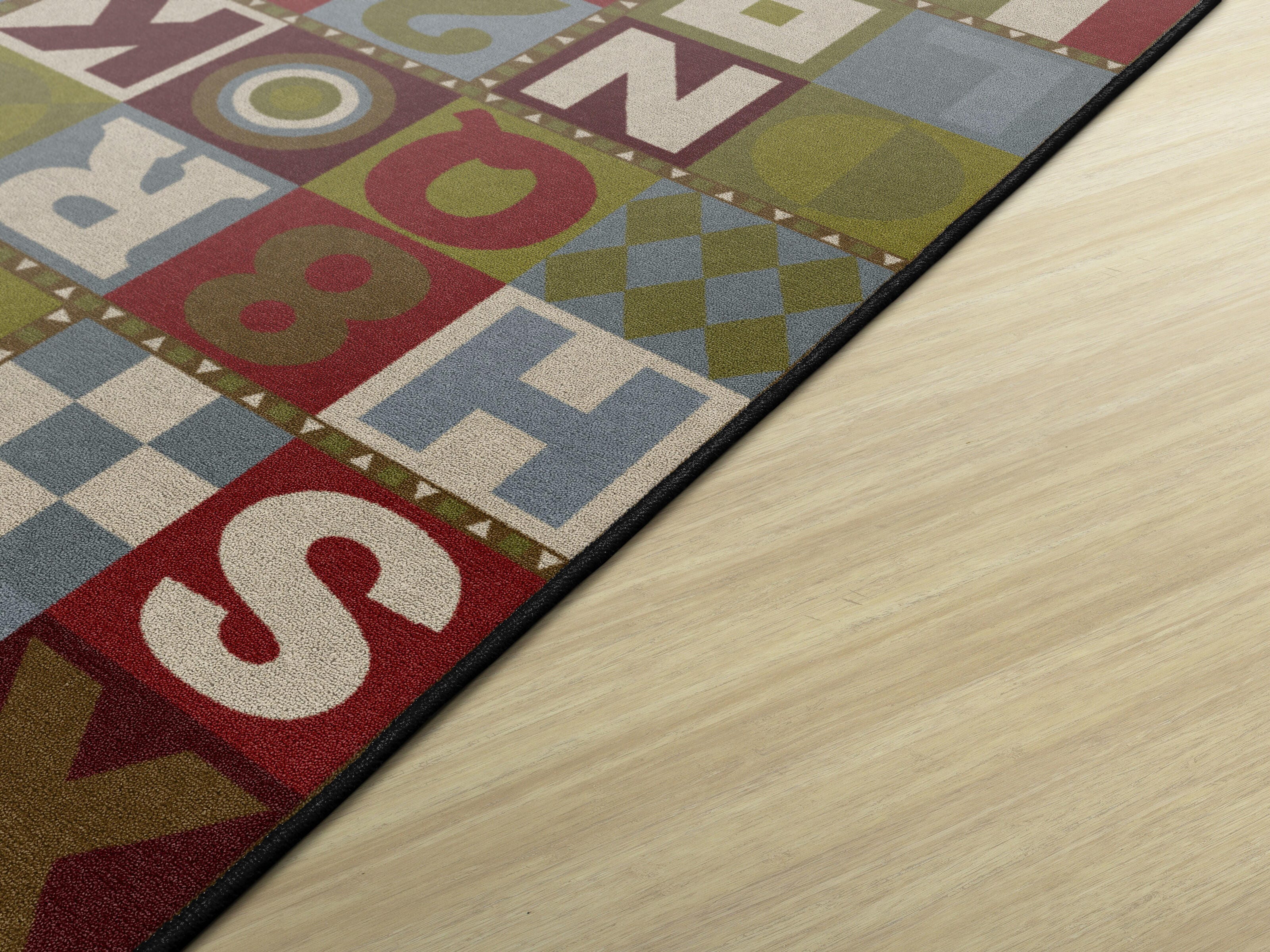 This Floors That Teach educational carpet by Flagship Carpets is ideal for teaching letter, number, and color recognition, visual discrimination, phonics, rules, math facts, and more. Available in primary colors. Includes a Teacher's manual for easy classroom assimilation. Perfect for spaces where children gather - in playrooms, preschools, classrooms, and childcare centers. Pairs well with circle time and storytime. Washable carpets feature skid-resistant backing to prevent slips and trips, and are treated with SCOTCHGARD-PROTECTOR for superior soil resistance and FORCE 5, a permanent anti-microbial agent to guard against odor, mildew, and mold. All Flagship Carpets are CRI Green Label Plus Certified. Backing contains synthetic (SBR) latex for those with latex allergies. Available in several sizes to match your space.