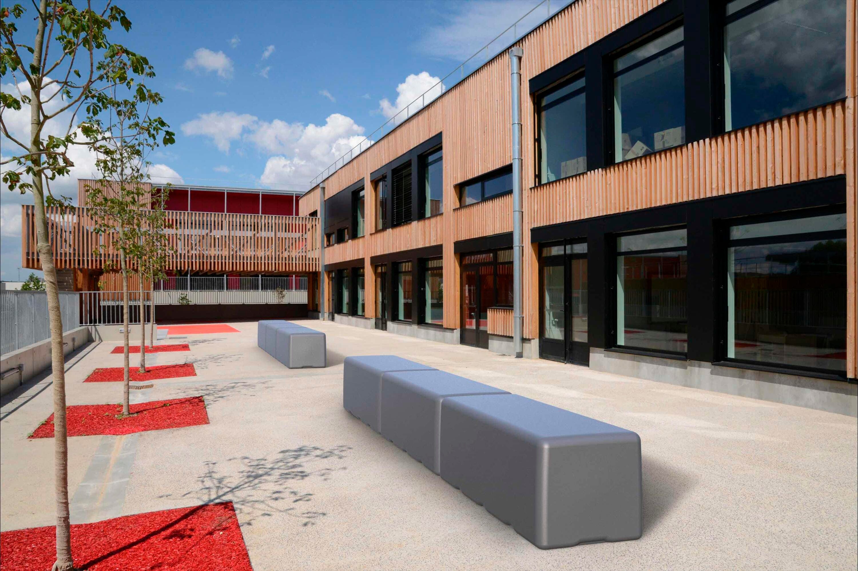 Dash is a straight bench that can be used in modular arrangements with the Tenjam's Swerve (arc shape) bench to create many seating arrangements. Use Dash by itself or pair it with more Dash and Swerve Benches to provide continuous seating. One-piece hard plastic design provides the ultimate in tamper resistance and easy cleaning and disinfecting. Supports over 750 pounds. Non-marking rubber legs protect your indoor and outdoor floor surfaces and provide excellent grip on any flooring surface. Engineered for year round outdoor use and exposure to sun, snow, sand, salt, and rain. The top of the bench is slightly crowned to promote the shedding of water, quick drying, and immediate use after it becomes wet.Features