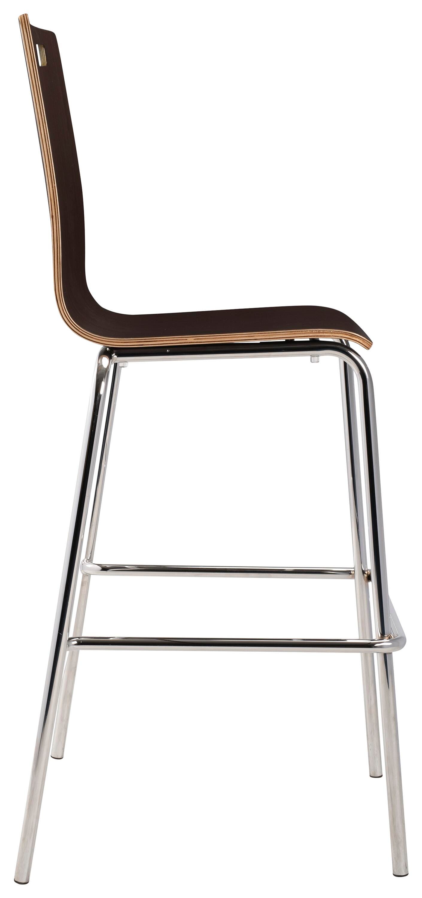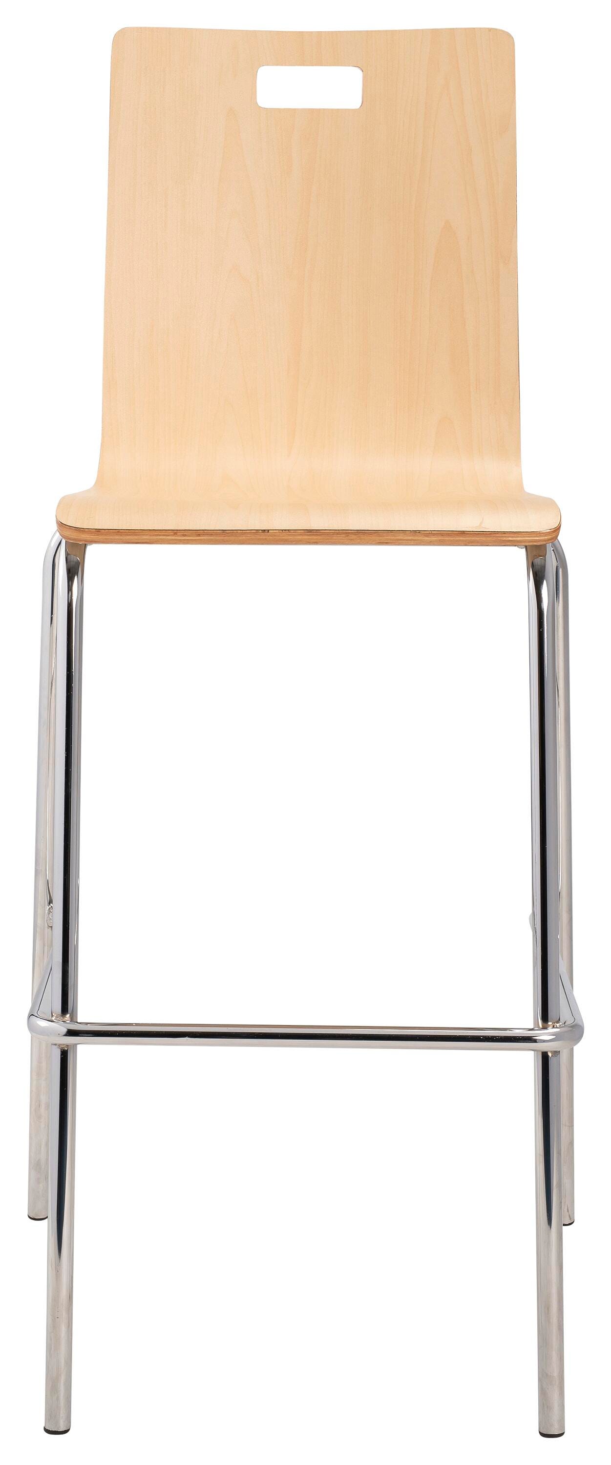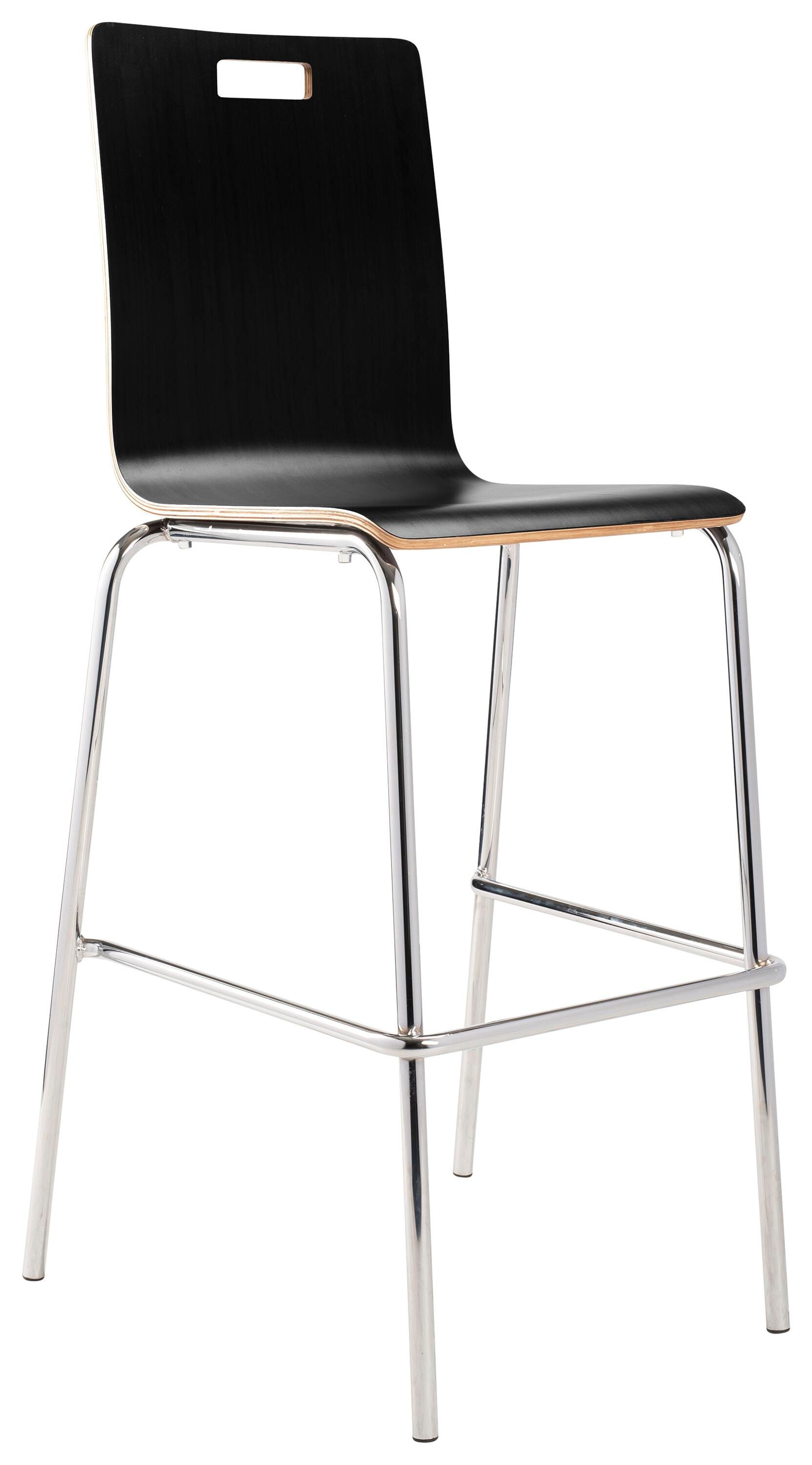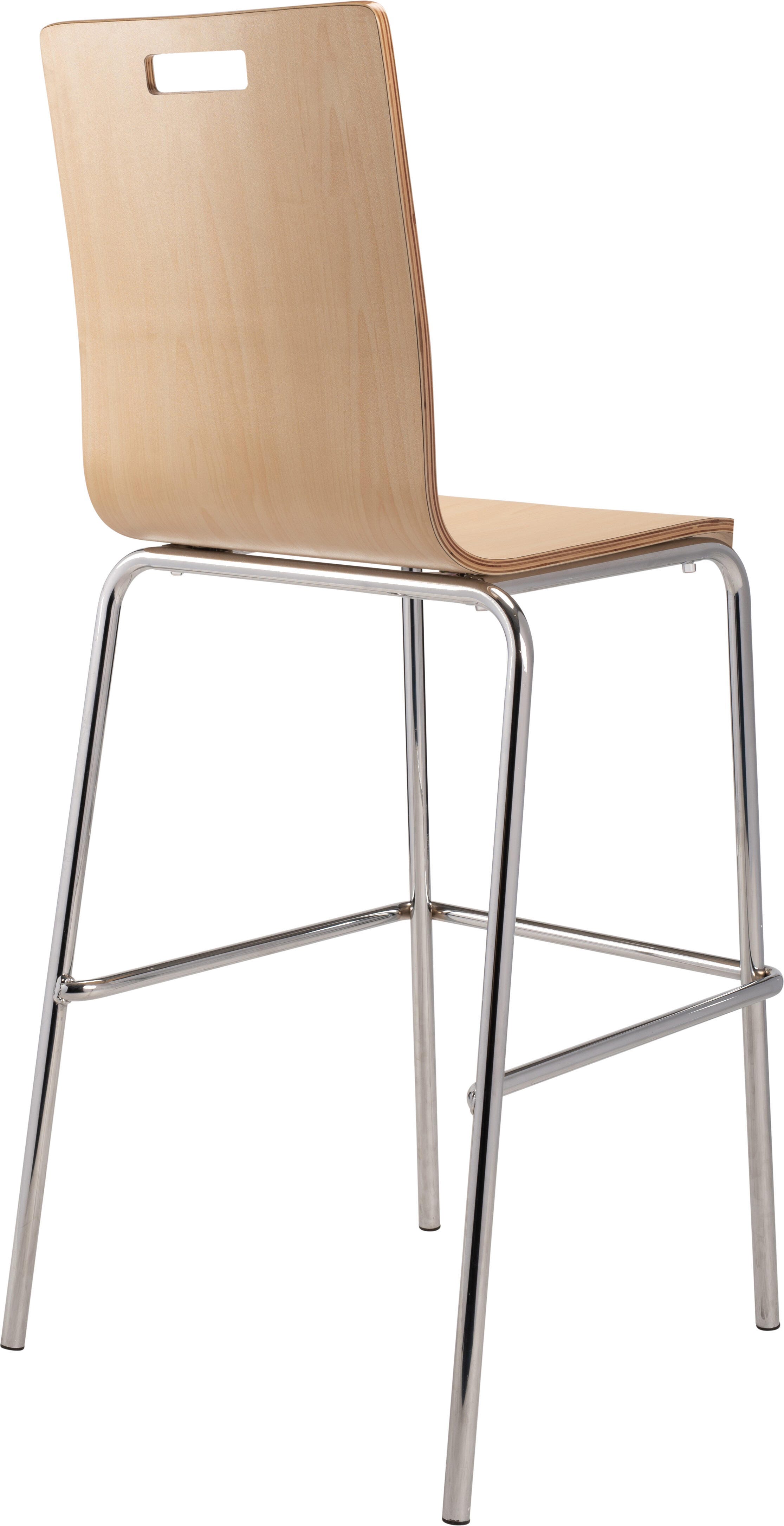 The Bushwick Café Chair and Barstool from NPS! Features 8-layer bent plywood seat with a high-end HPL finish, legs made of 7/8 in. 16 Gauge chrome tubing, and non-marring, plastic glides. Modern handle for easy movement and storage. Weight capacity exceeds 500 lbs.