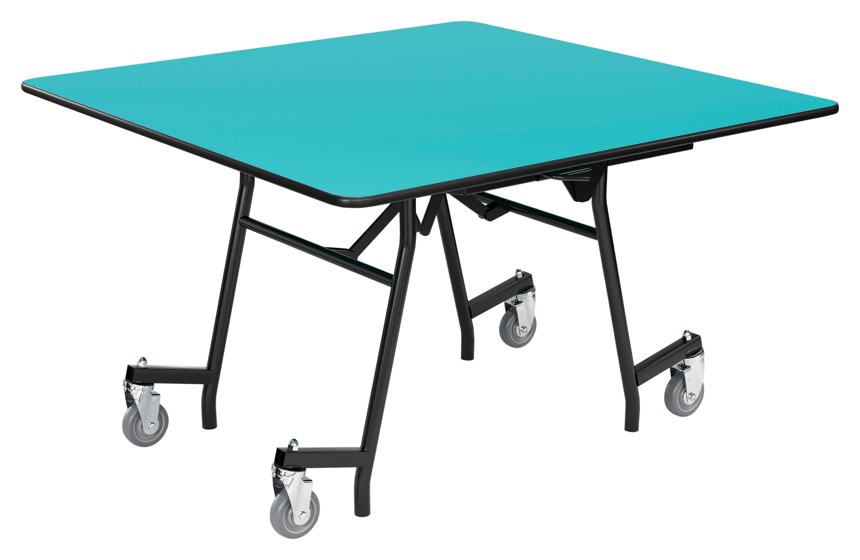 The one-piece design and durable structure make this the perfect multi-purpose table for cafeterias, banquets, and most events. When opened, this is a seamless surface that automatically locks with two points of manual release to fold and can be nested for easy storage. 4 inch double ball bearing swivel casters allow for easy transportation and lift off the floor in an open position to prevent table from rocking or shifting. Glass-filled nylon, high-impact glides allow no leftover marks when moving.