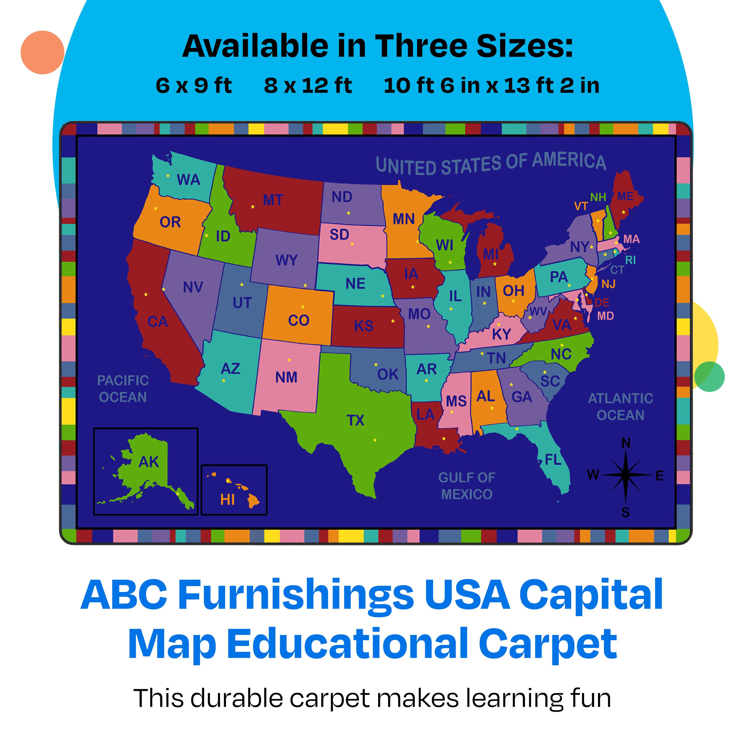 Childcraft ABC Furnishings USA Capital Map Educational Carpet, Rectangle
